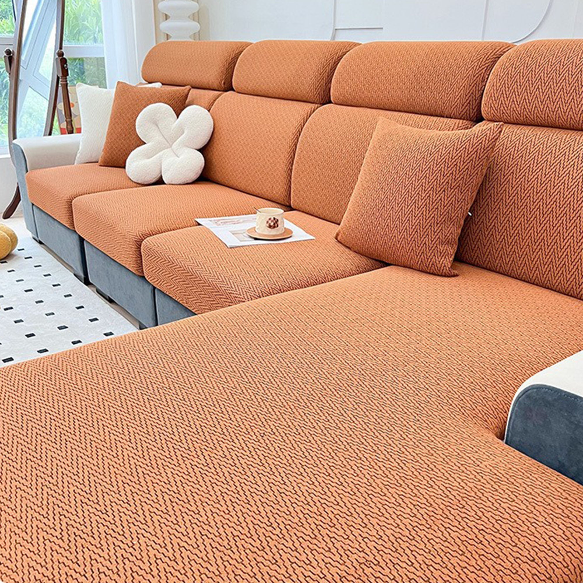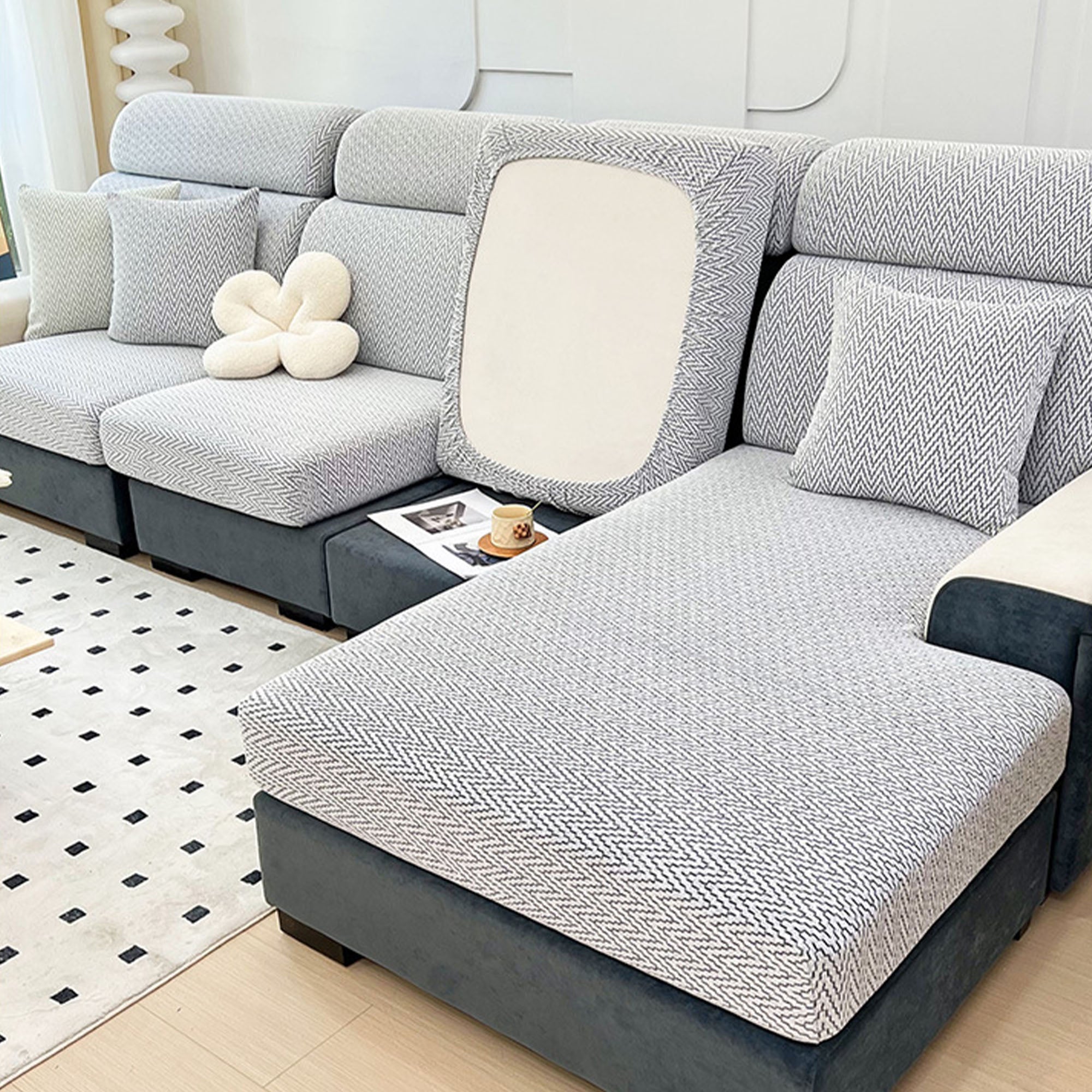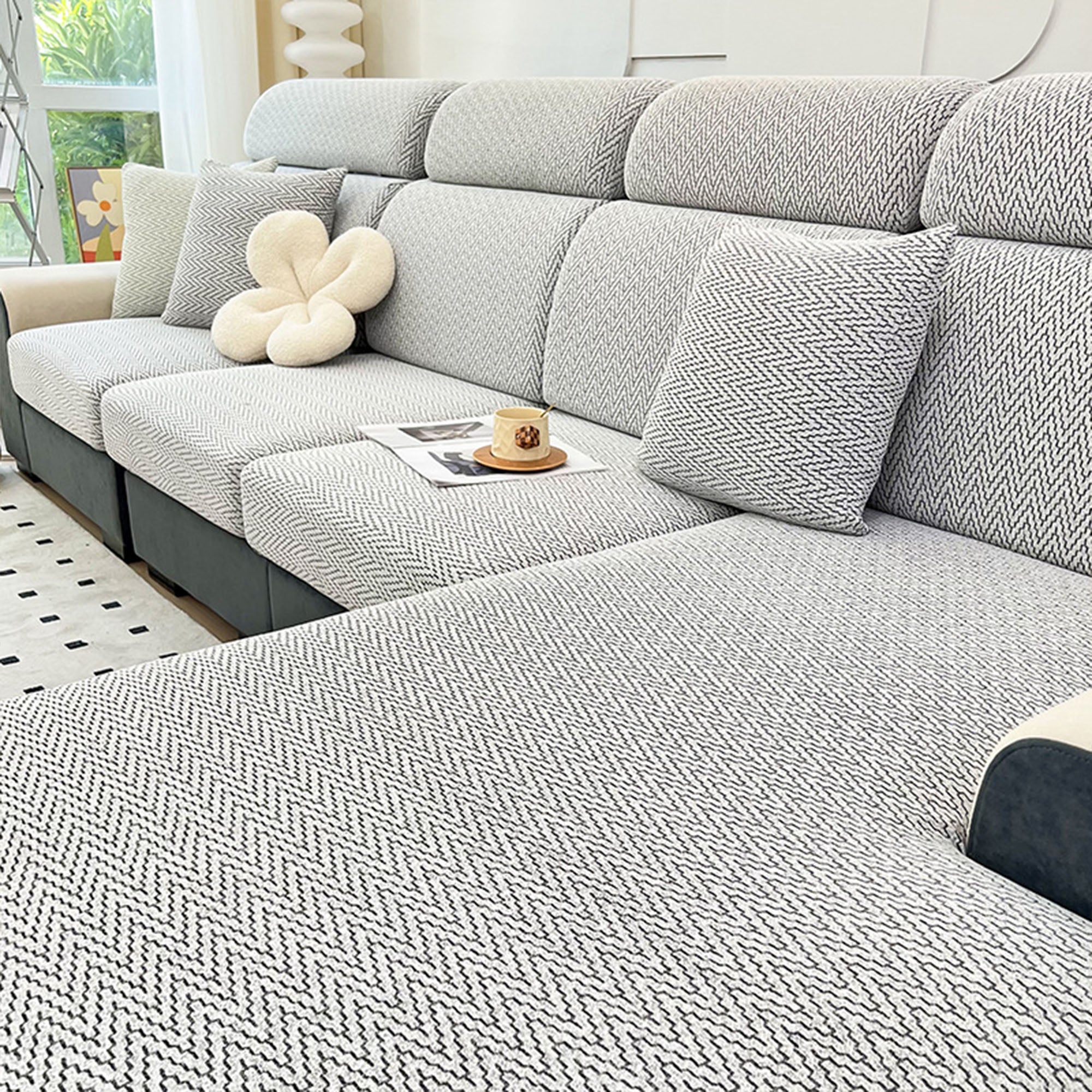 Protect and refresh your sofa with our UltraGrip Chevron Jacquard Stretch Sofa Cover. Crafted with premium jacquard knitting, the subtle chevron texture and clean lines create a refined, sculpted look while delivering all-around protection. The high-elastic fabric hugs every curve for a custom fit, and a dual anti-slip system keeps the cover steady—sit, lounge, or jump, it stays put. Tough yet soft, it resists daily wear and cat scratches so you spend less time tidying and more time relaxing.