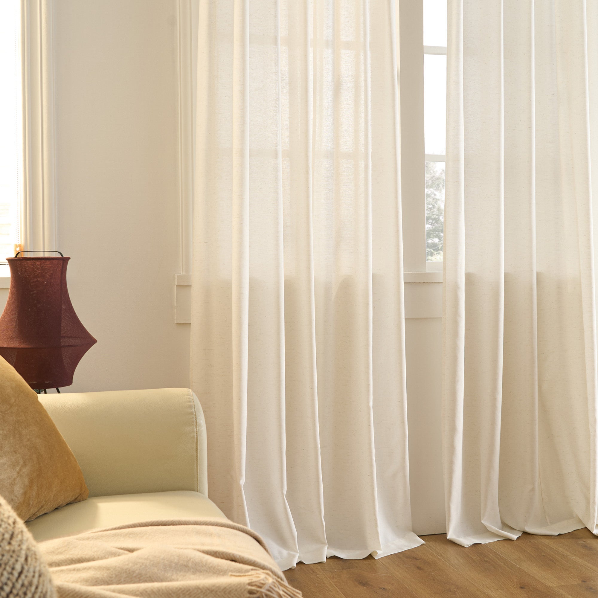 • Linen-Infused Sheer Fabric: Soft, breathable material with 3% linen for a refined natural aesthetic.