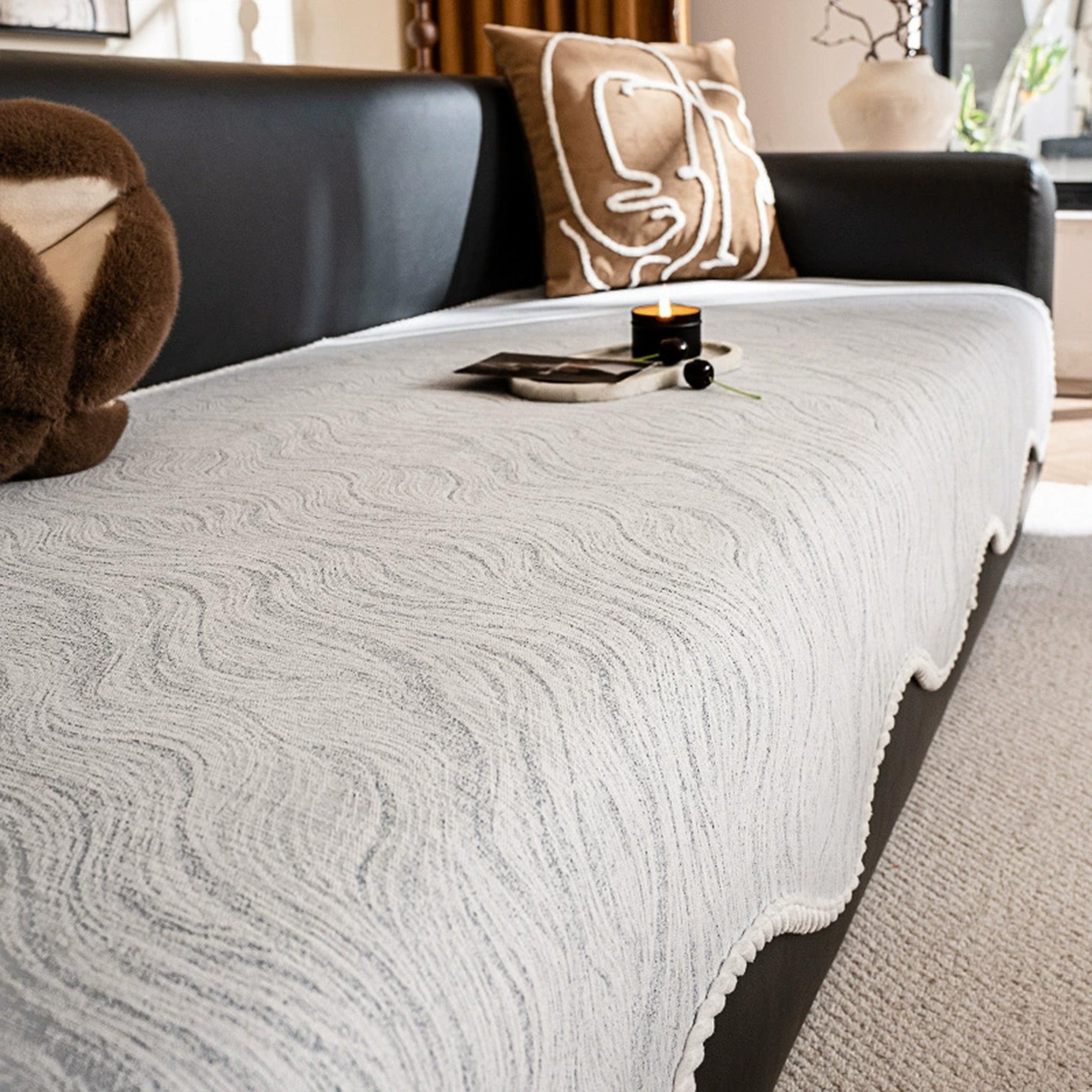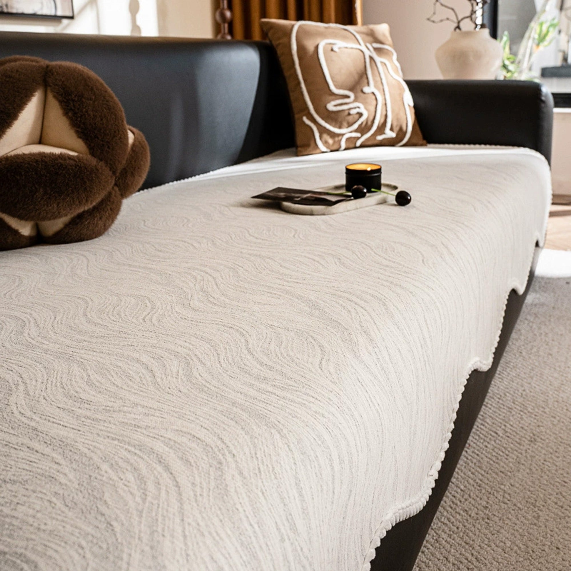 Bring modern elegance and cozy charm to your living space with the Elegant Wave Textured Nonslip Sofa/Couch Cover. Featuring a graceful wave-inspired pattern with delicate decorative edging, this cover seamlessly combines style with practicality. Crafted from durable, pet-friendly fabric, it protects your sofa against daily wear, pet fur, and scratches while adding a refined design element. Its nonslip backing ensures a secure fit, keeping your sofa looking neat at all times.