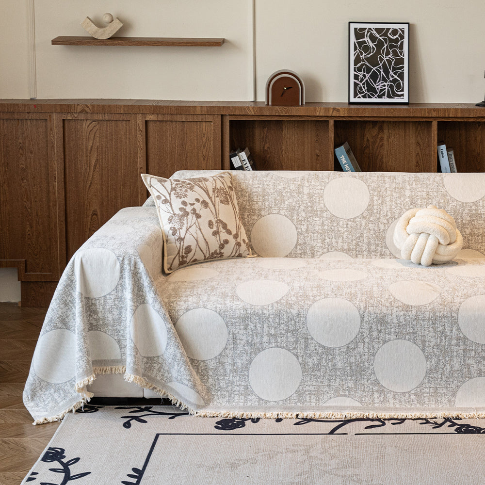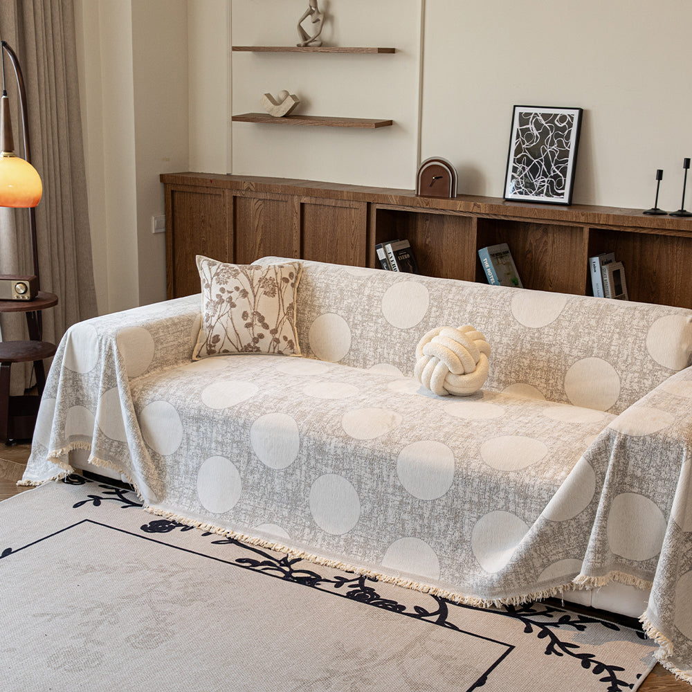 Bring refined simplicity and cozy charm to your living space with our Soft Dot Chenille Scratch-Resistant Sofa/Couch Cover. Featuring a modern oversized-dot pattern blended with a textured background, this cover adds a fresh yet sophisticated touch to any room. Crafted from premium, pet-friendly chenille fabric, it provides soft comfort while offering dependable protection against daily wear, stains, pet fur, and scratches.