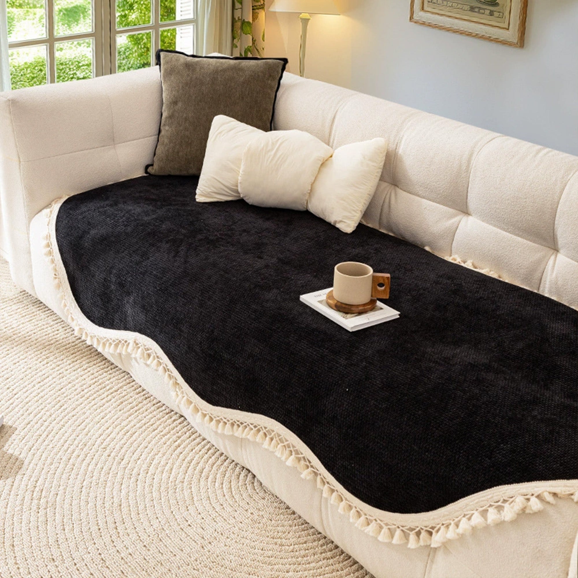 Bring elegance and comfort to your living space with the Tassel Grace Chenille Nonslip Sofa/Couch Cover. Designed with a soft chenille texture and playful tassel edges, this cover adds warmth and charm to your décor. Its nonslip backing ensures it stays securely in place, while the durable, pet-friendly fabric protects against scratches, spills, and daily wear. Perfect for enhancing both style and practicality in your home.