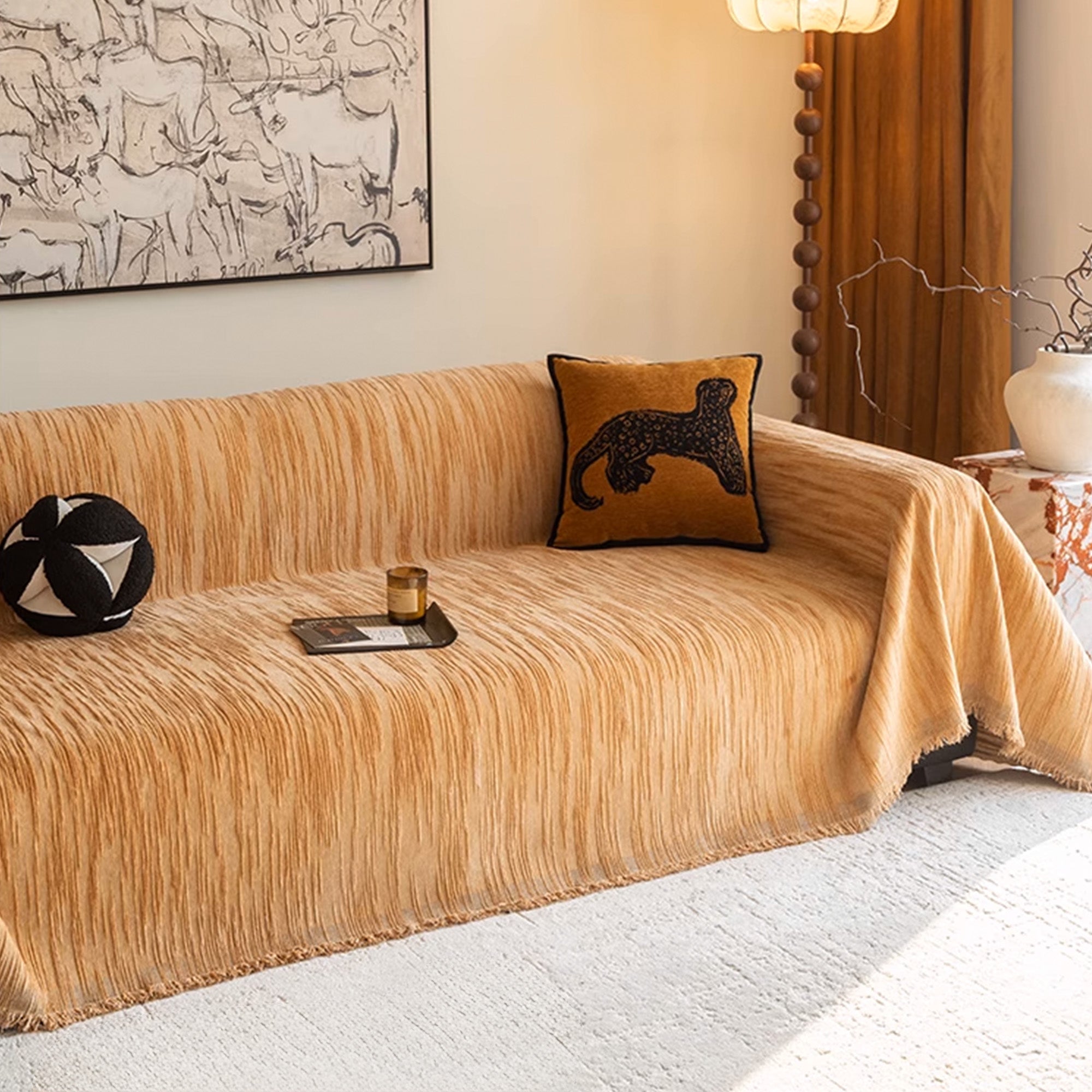 Elevate your home décor with the Velvet Stream Chenille Scratch-Resistant Sofa/Couch Cover, a harmonious blend of luxurious texture, durability, and modern elegance. Designed with a unique flowing ripple pattern, this cover adds depth and sophistication to any living space while offering practical everyday protection.