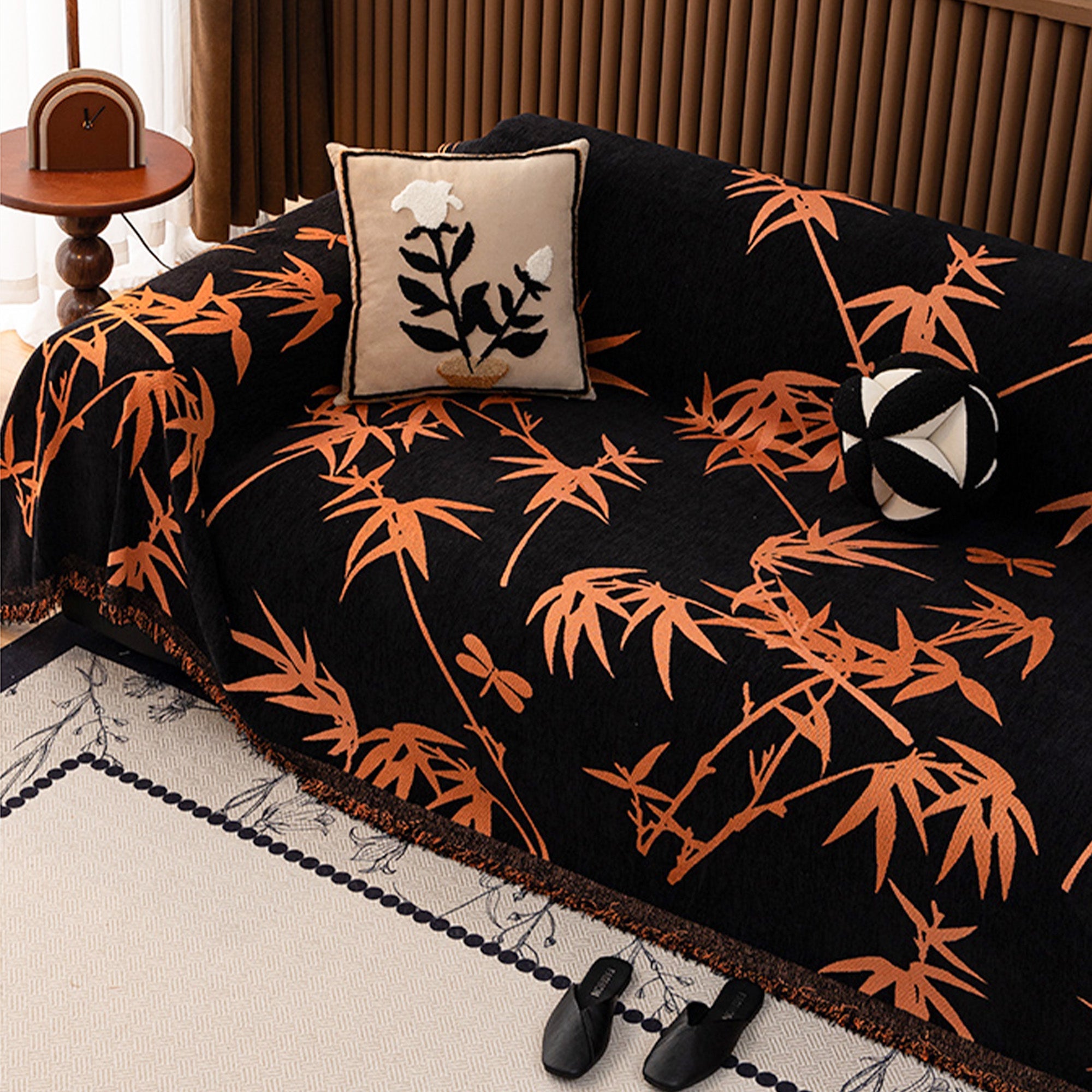 Transform your living space with the Bamboo Grove Artisanal Sofa Cover. This exquisite cover not only elevates your interior décor but also ensures your furniture stays protected from everyday wear and tear. Perfect for creating a serene, nature-inspired ambiance, the sofa cover features a bold bamboo and dragonfly motif that adds both elegance and warmth.