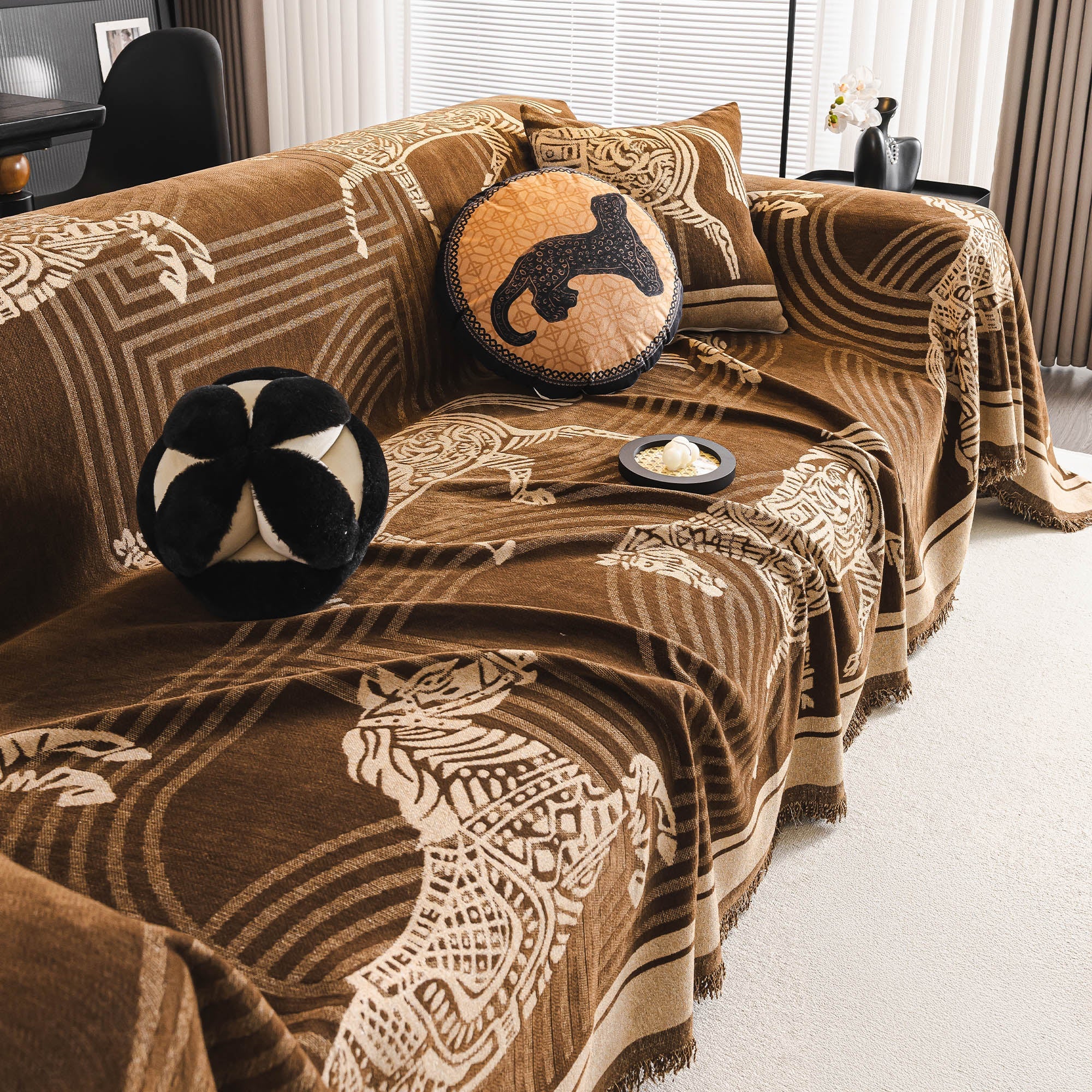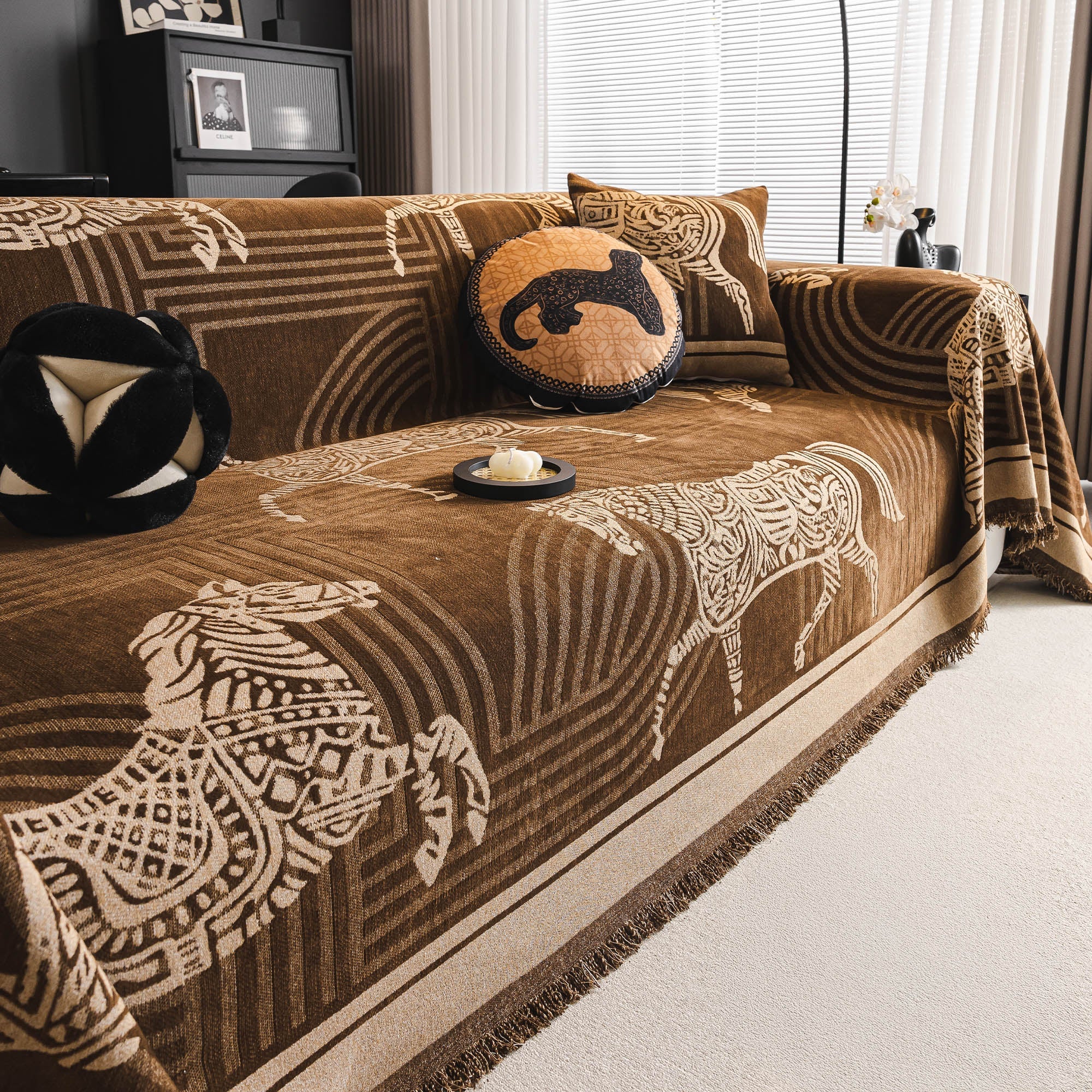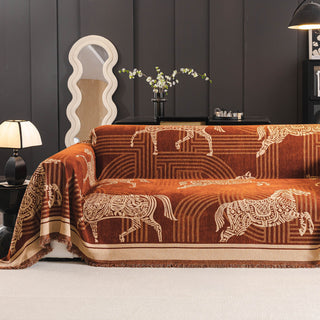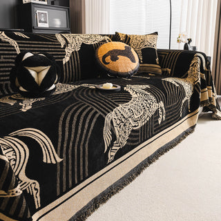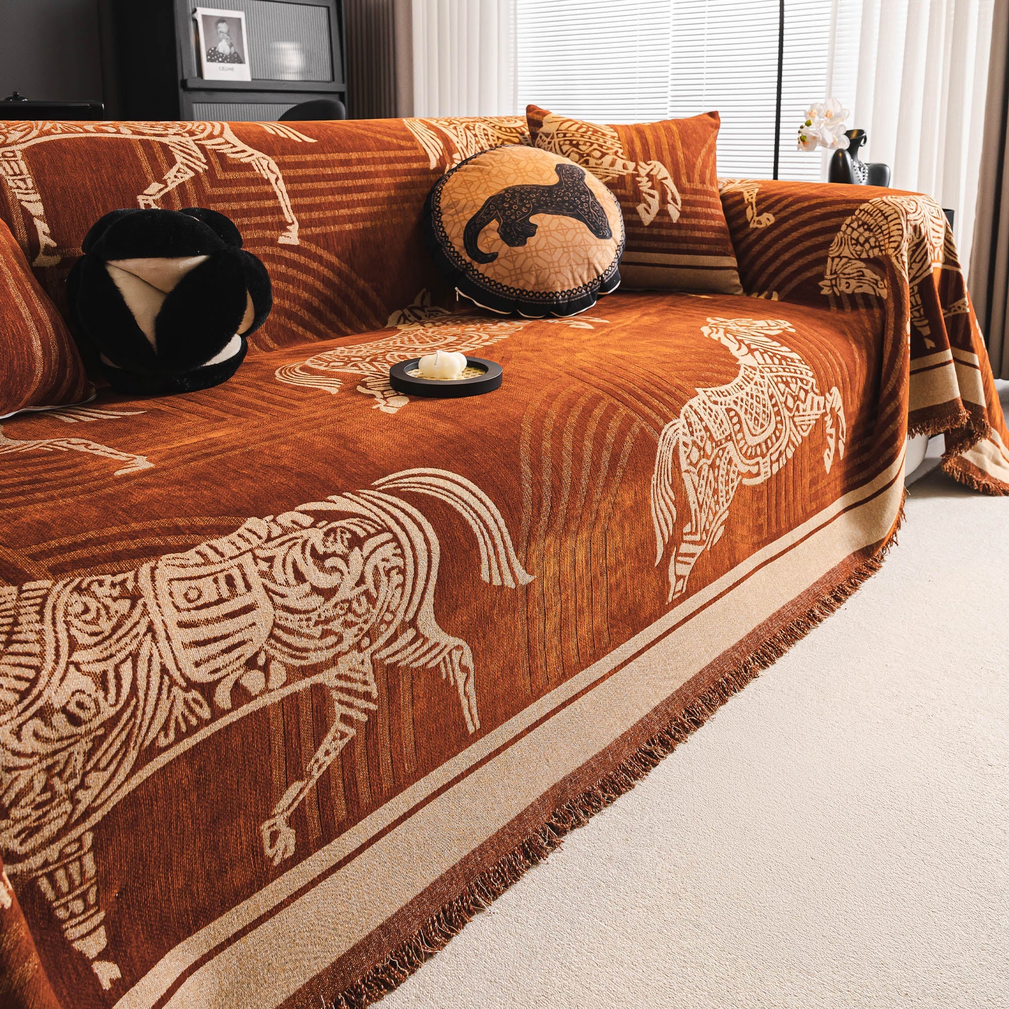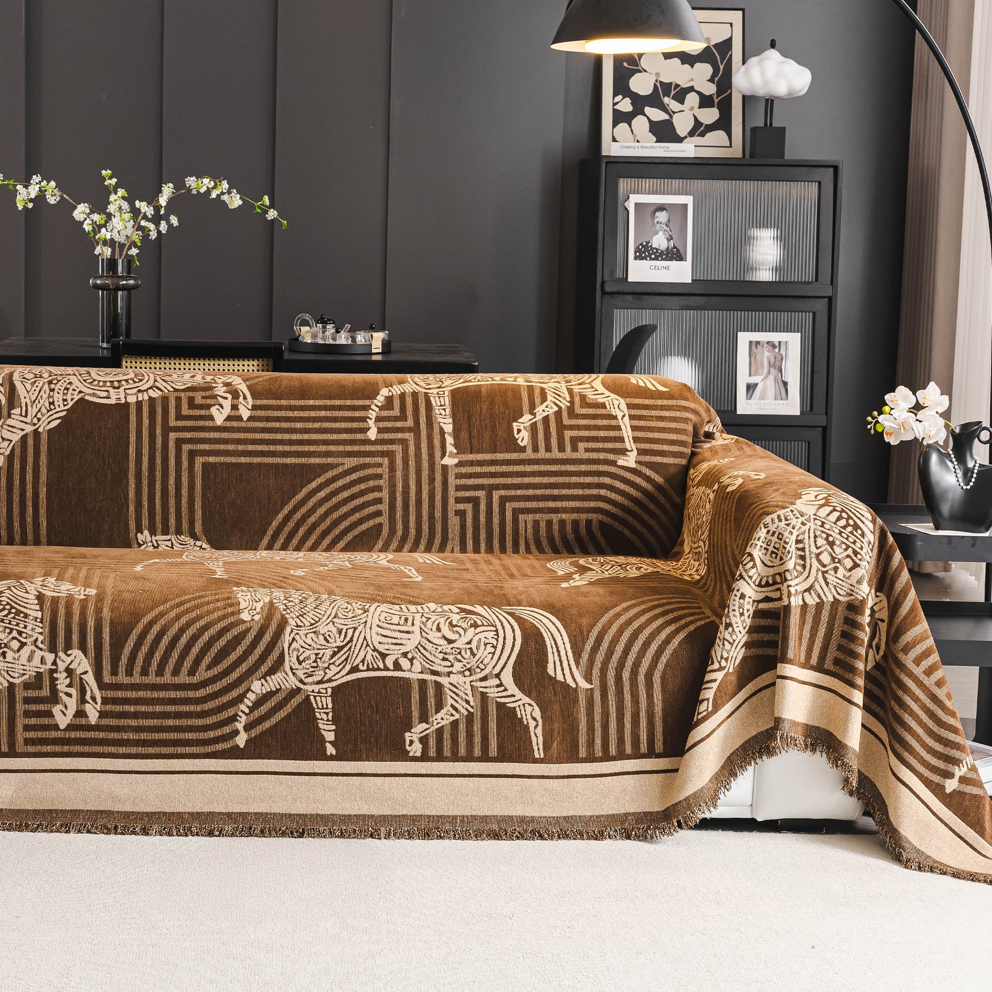 Chic Horse Pattern Breathable Chenille Couch Cover Soft Stylish Sofa Protection for a Cozy Modern Hassle-Free Home
