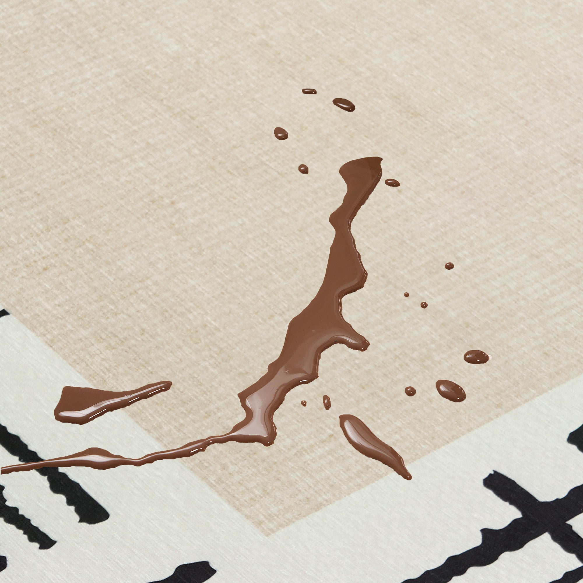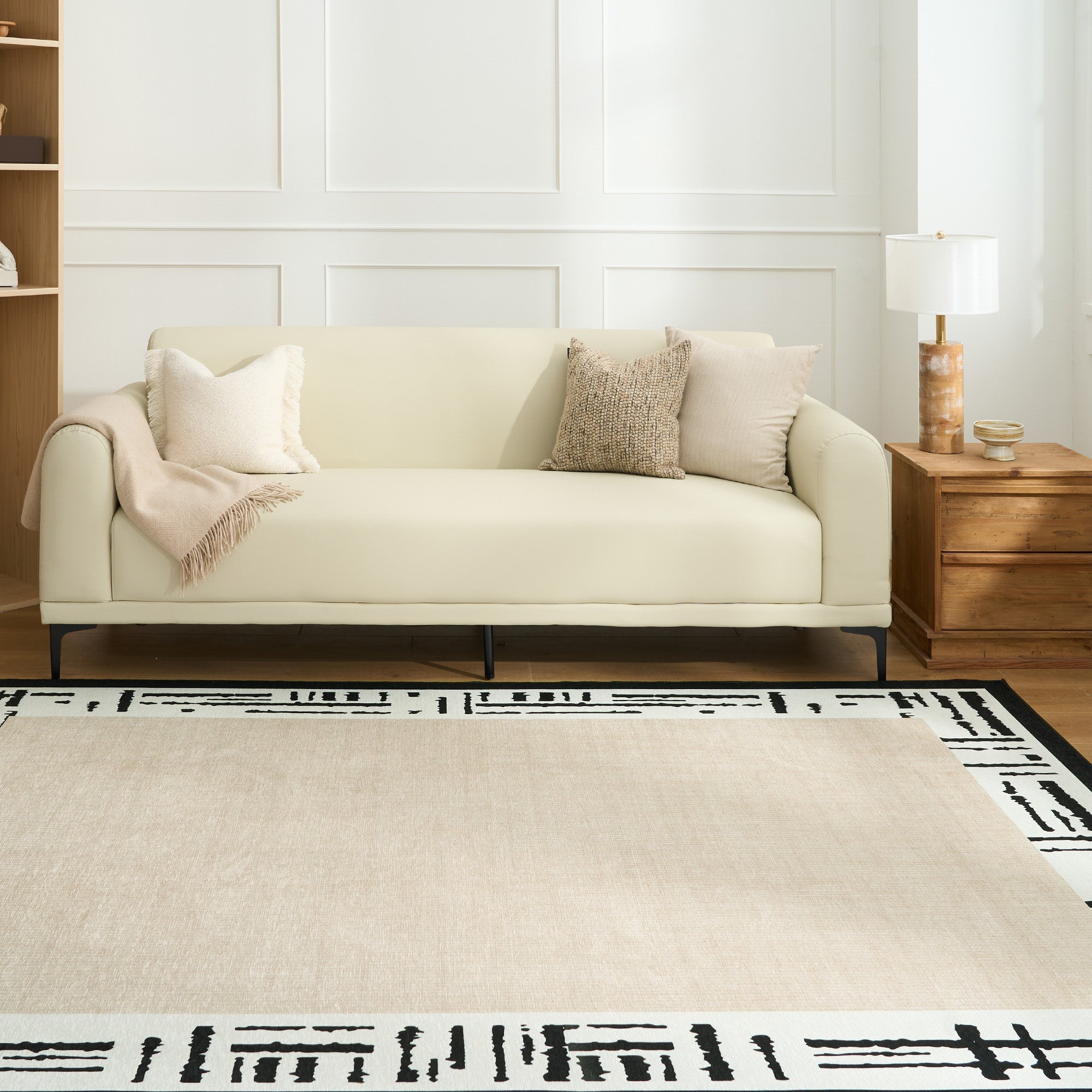 Easy Clean Washable Rug Modern Abstract Bordered Neutral Design Durable Spillproof Pet-Friendly Non-Slip Pad Living Room Area Rug