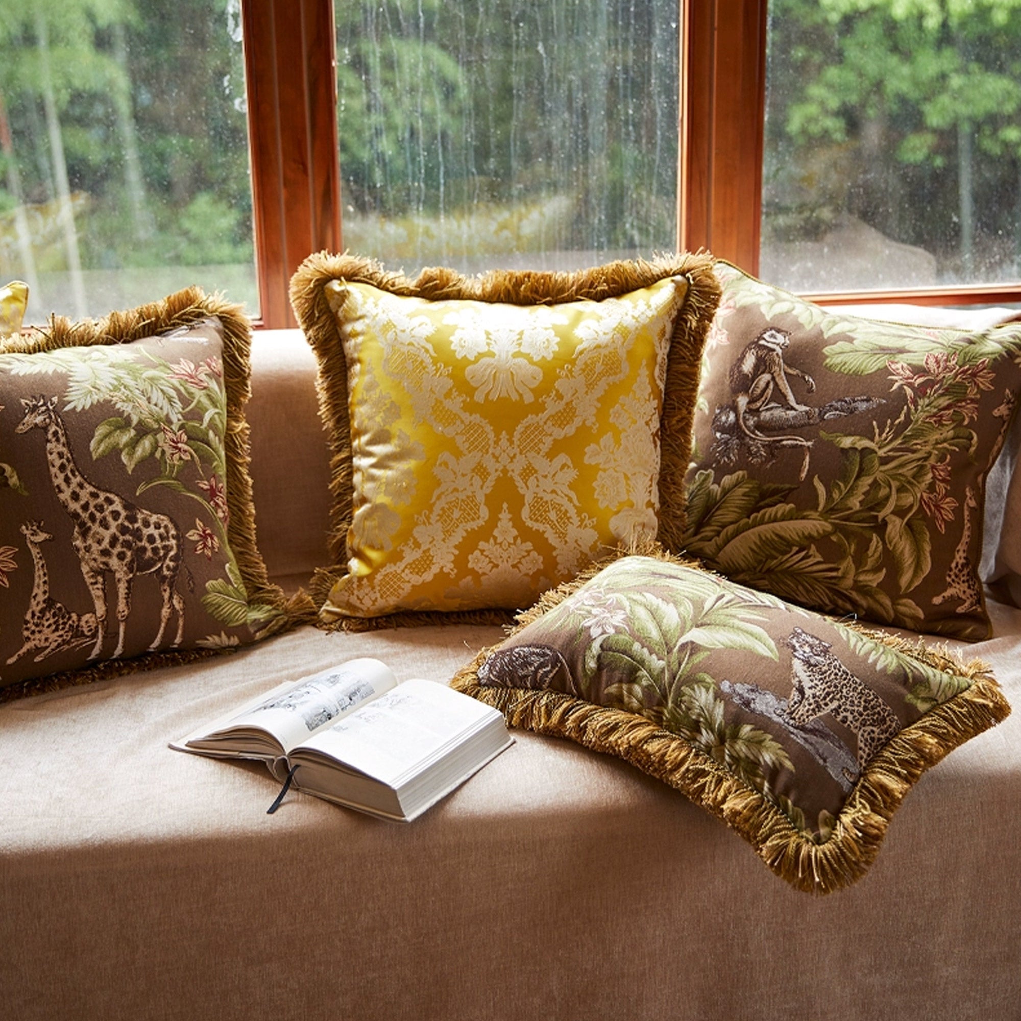 Embrace luxury with the Golden Baroque Fringe Throw Pillow!
