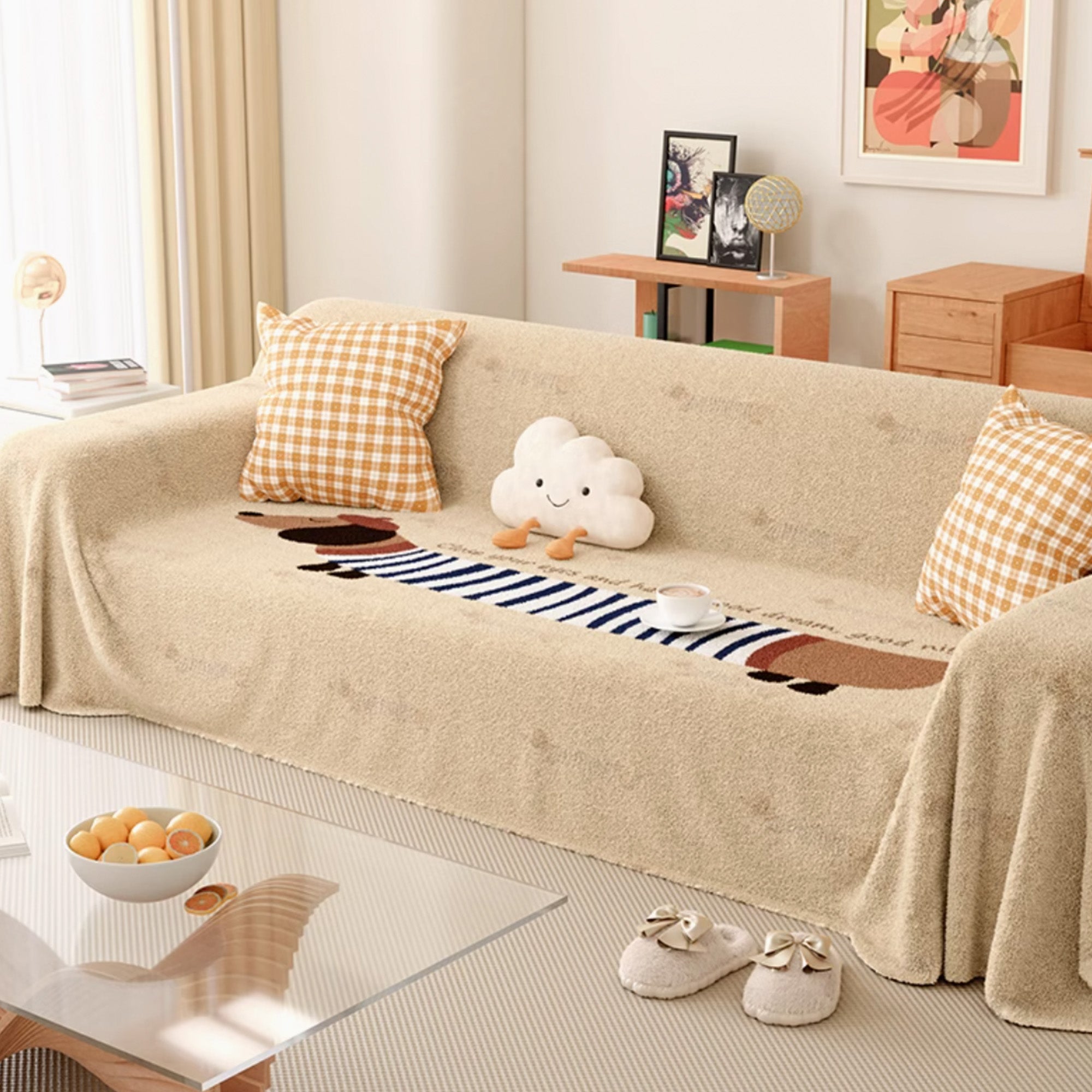 Playful Dog Pattern Sofa Cover Perfect for Pet Lovers Adding Style and Functionality