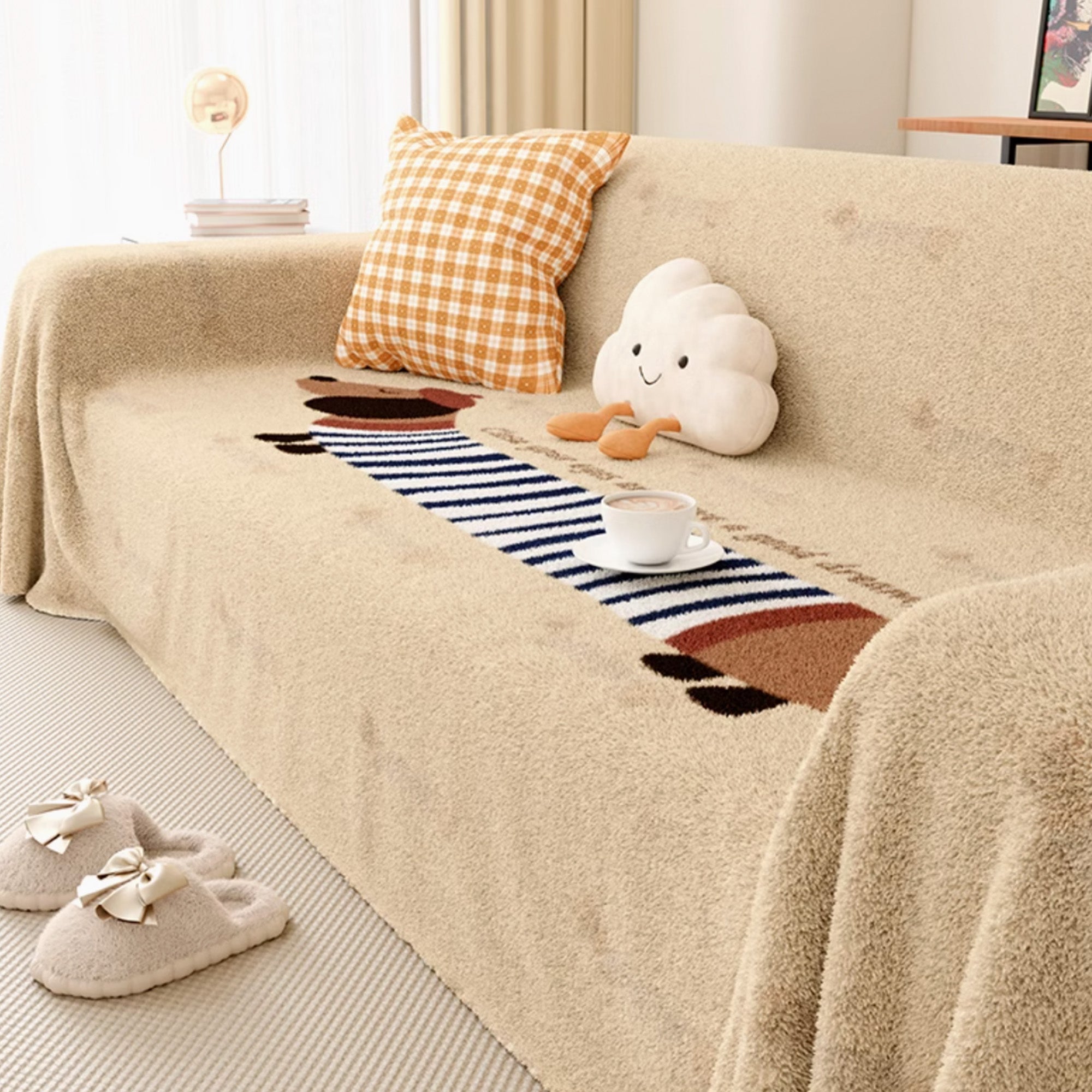 •Versatility: The dog printed lamb wool sofa cover is perfect for pet owners, as it combines a protective, functional aspect with a fun, thematic design. It can be used as a decorative throw on a sofa, loveseat, or even on a bed for a warm, cozy feel.