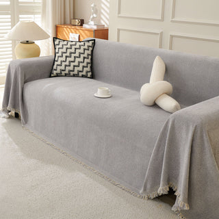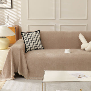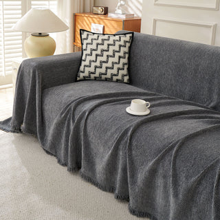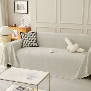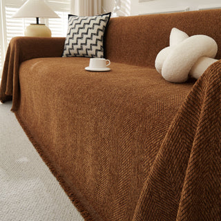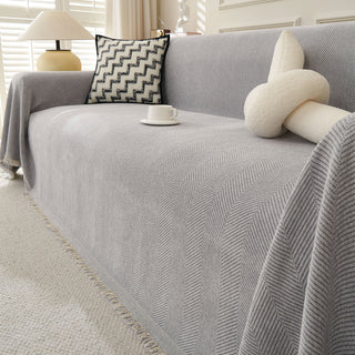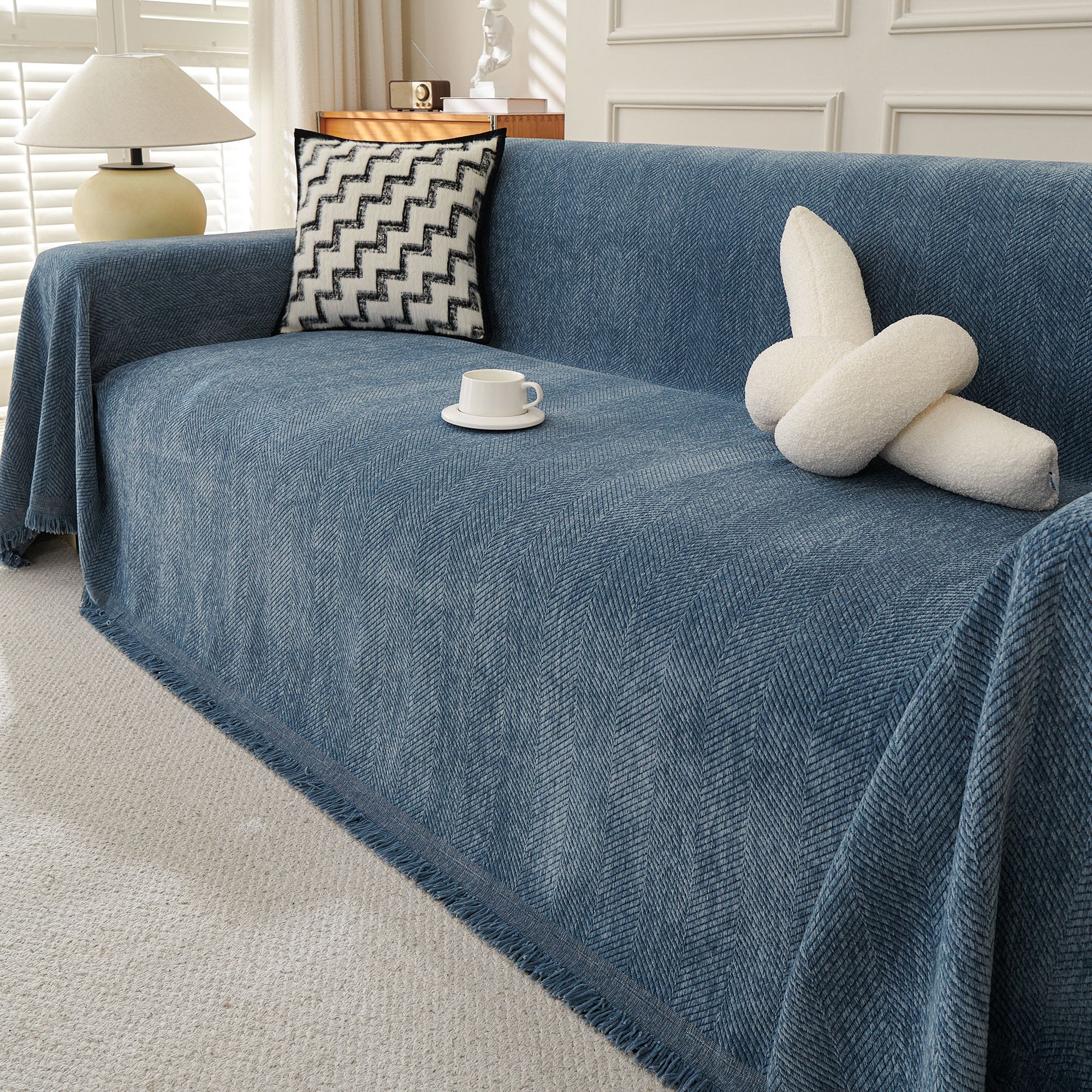 Soft Breathable Herringbone Plush Pet-Friendly Multi-Purpose Minimalist Sofa Cover – Woven Throw Couch Protector