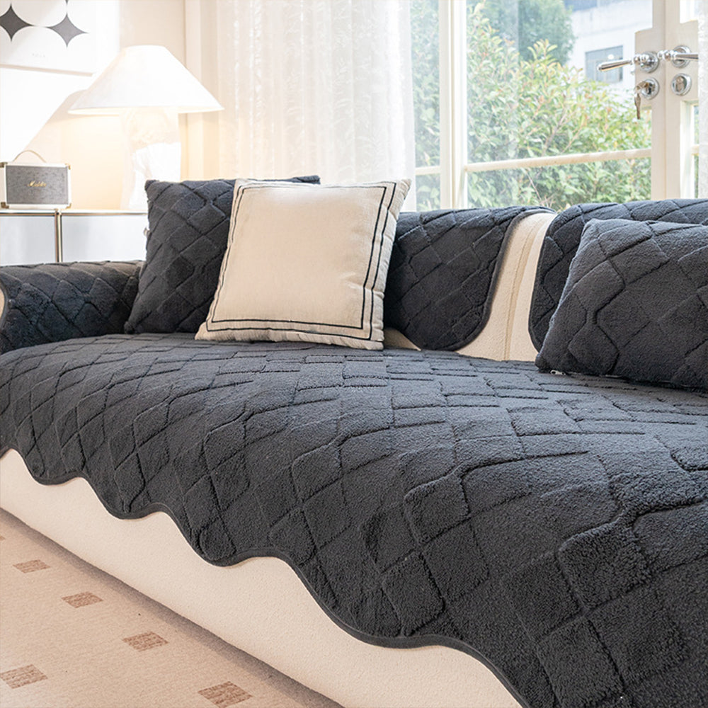 The softly quilted grid texture adds subtle depth and elegance, while the full-coverage, one-piece design adapts beautifully to straight or irregular-shaped sofas. Finished with smooth curved edges, it creates a gentle, tailored silhouette that elevates any living space.