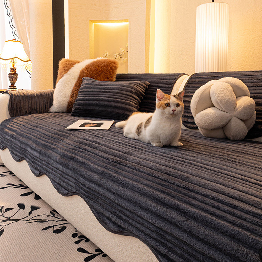Creamy Ribbed Plush Nonslip Sofa/Couch Cover