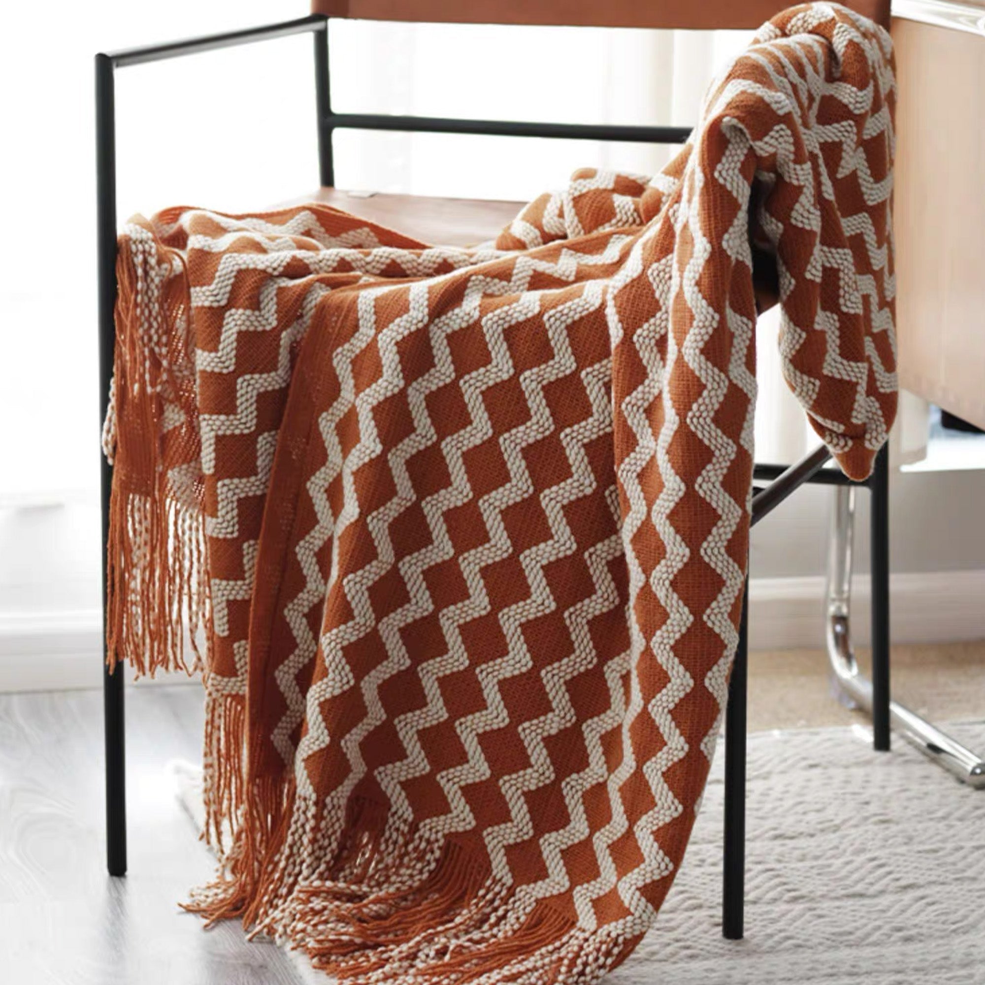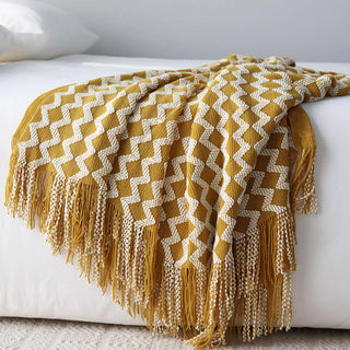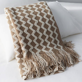 Chevron Patterned Fringe Throw Blanket