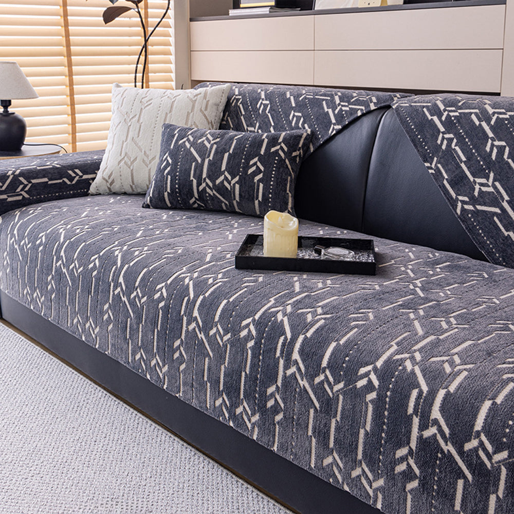 Crafted from premium thickened chenille fabric, it offers a soft, plush touch with excellent durability—perfect for year-round use. The subtle geometric lines add depth and texture without overwhelming your décor, making it an ideal match for modern, Scandinavian, or minimalist interiors. A nonslip backing ensures the cover stays securely in place, while the straight-edge design delivers a crisp, tailored look.