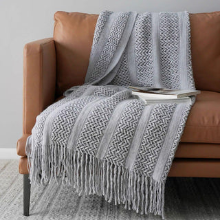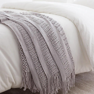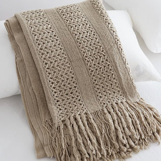 Add a touch of rustic elegance to your space with our Open Weave Knitted Throw Blanket. Crafted from soft, breathable yarn, this throw features a unique open-knit design that adds texture and charm to any room. The hand-knotted fringes add a bohemian flair, making it a perfect accent for your sofa, bed, or favorite chair.