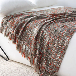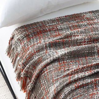 Add a touch of rustic charm to your living space with this Rustic Tweed Throw Blanket. Woven in a rich blend of earthy tones with a hint of warm orange accents, this throw exudes cozy sophistication. Its textured weave and fringed edges bring a timeless appeal to any decor, making it perfect for layering on beds or couches.