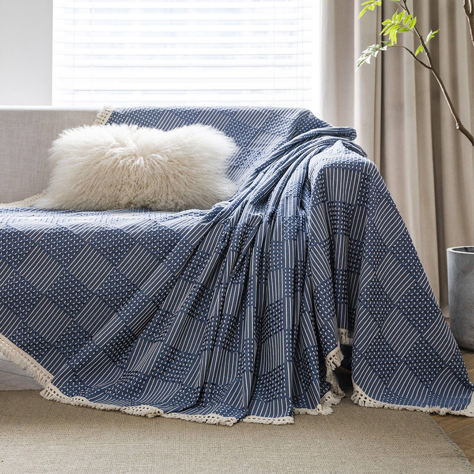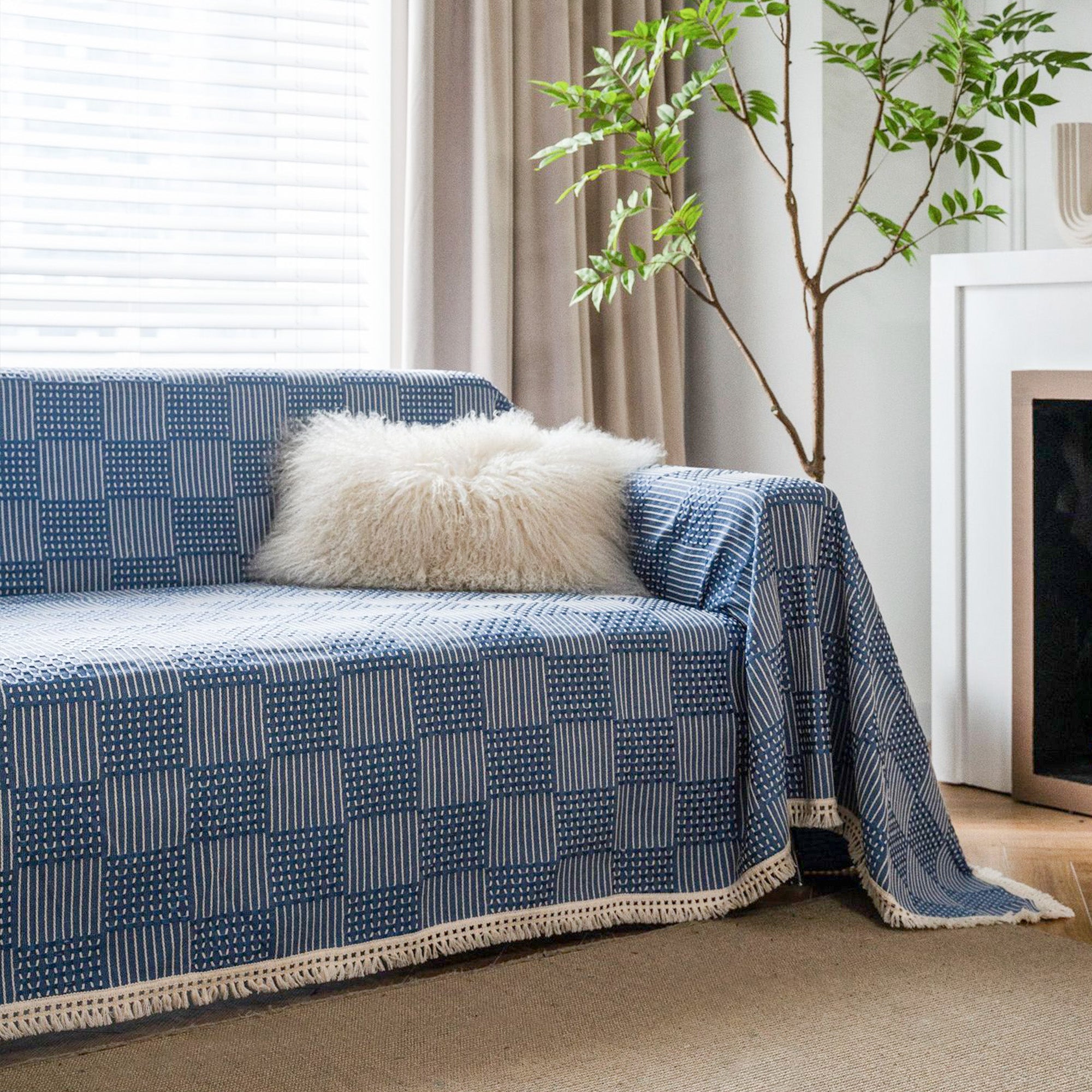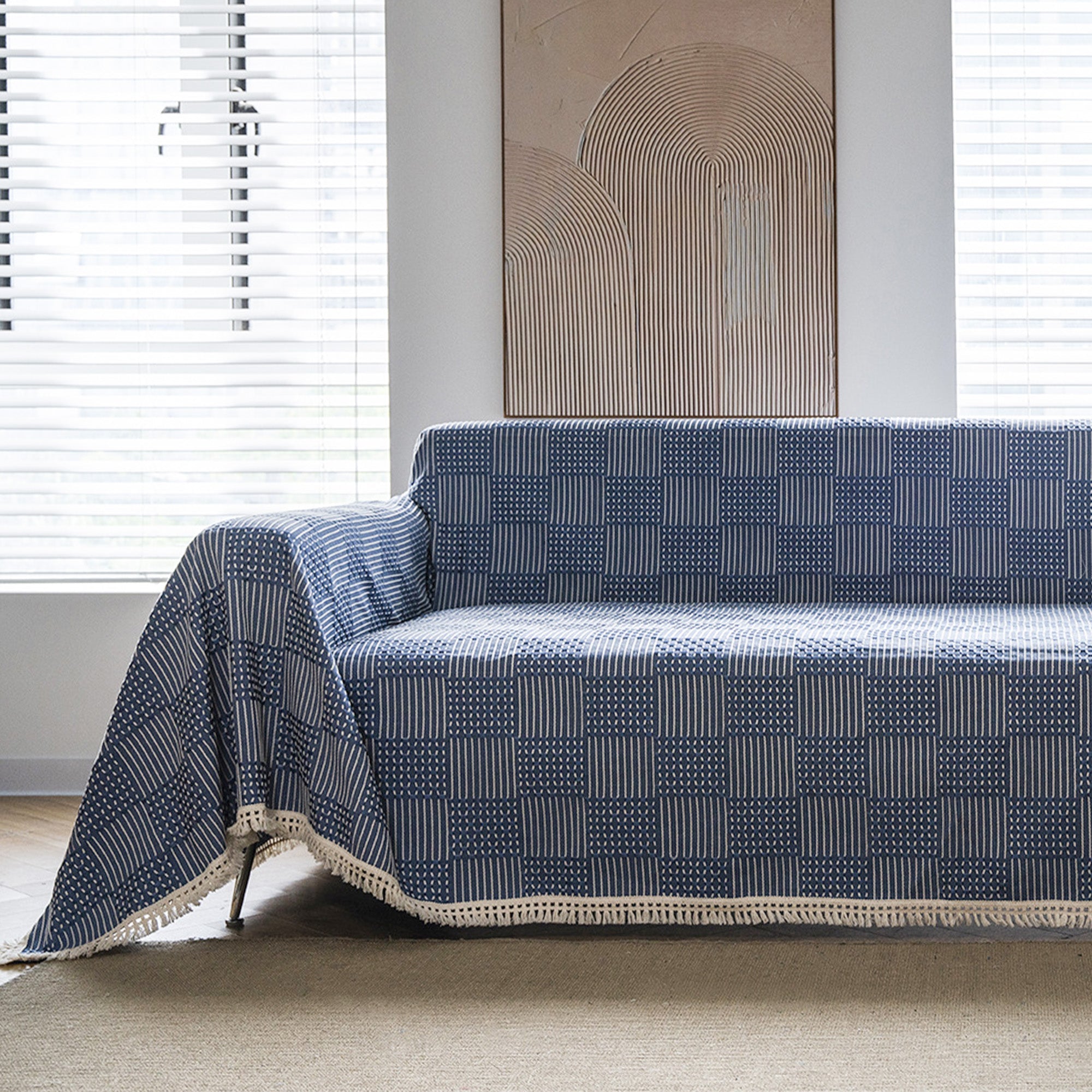 Transform your sofa into a statement piece with the Textured Indigo Patchwork Sofa Cover. Inspired by traditional craftsmanship, this cover effortlessly blends rich tones with intricate patterns, creating a cozy yet sophisticated look for your living space. Whether you’re curling up with a good book or hosting a movie night, this cover delivers comfort and style in equal measure.