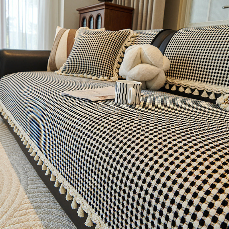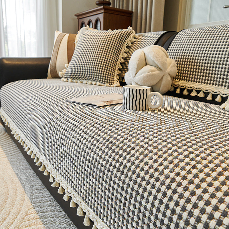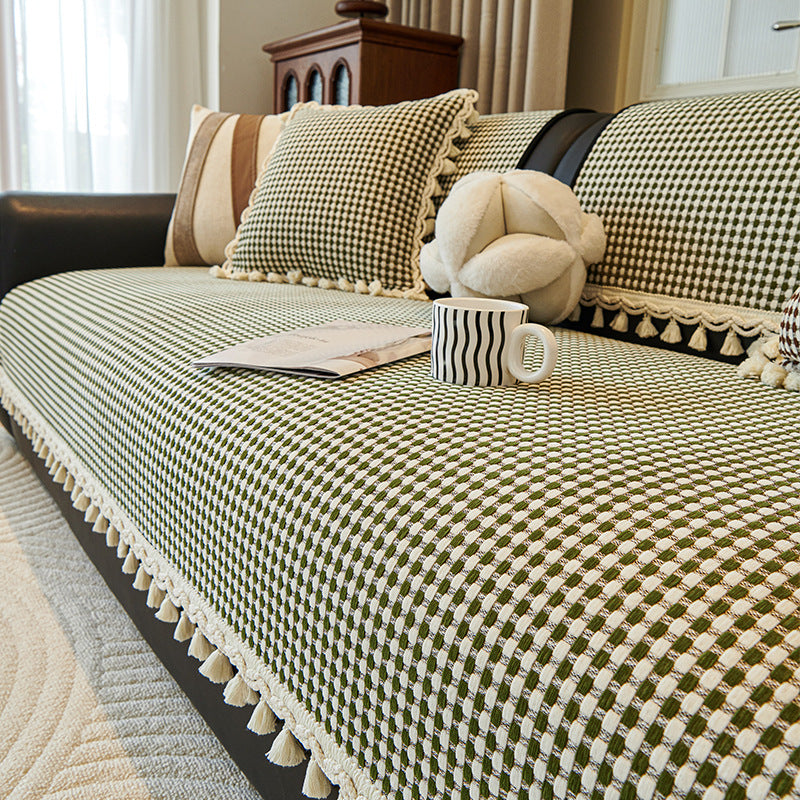 Cozy Gingham Tassel Chenille Nonslip Sofa/Couch Cover