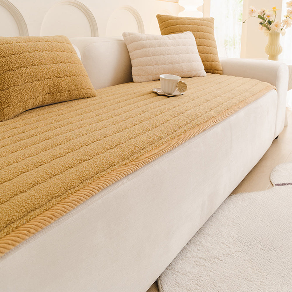 Wrap your sofa in plush warmth with our Cozy Ribbed Sherpa Nonslip Sofa/Couch Cover. The thick short-pile sherpa and ribbed quilting add cushioned comfort while elevating your space with a clean, minimalist look—perfect for fall and winter.