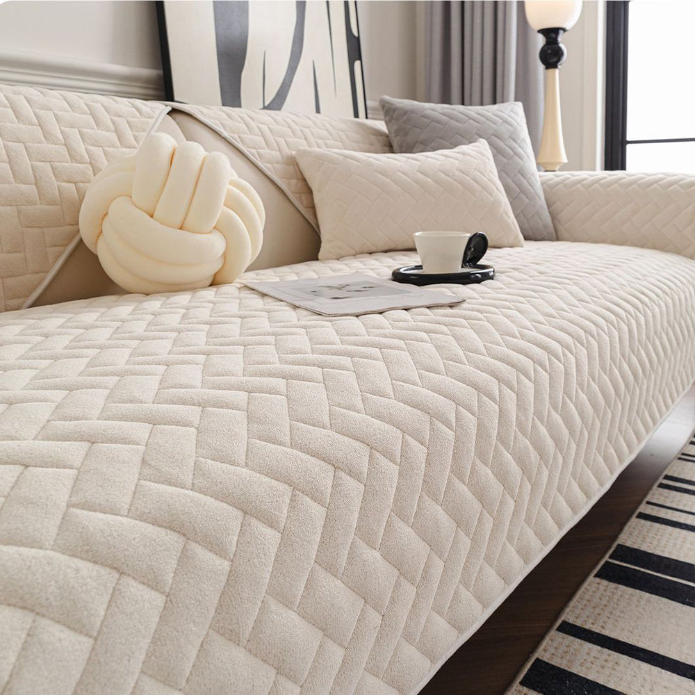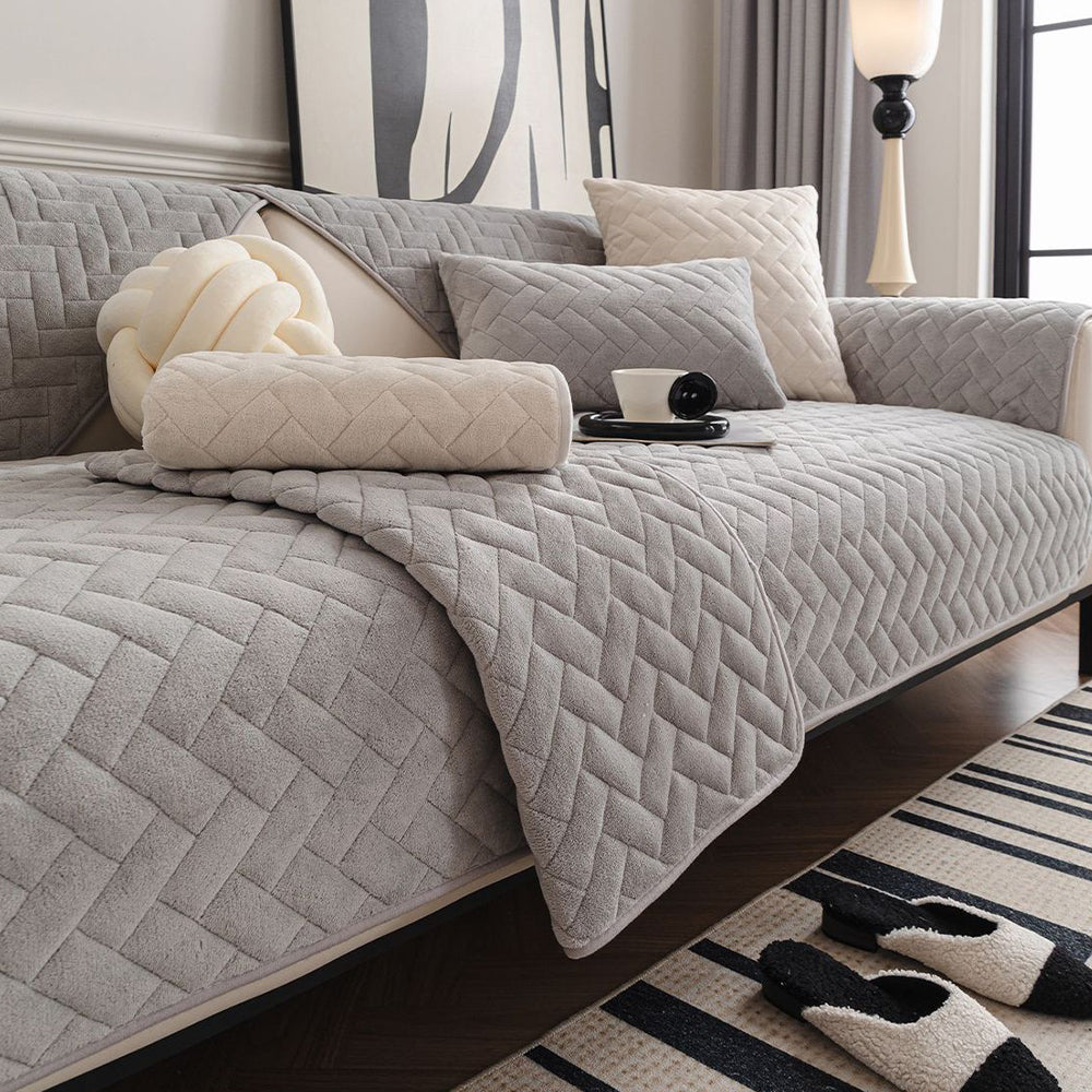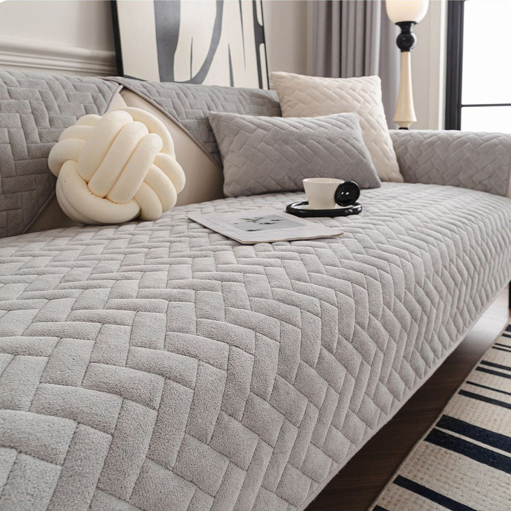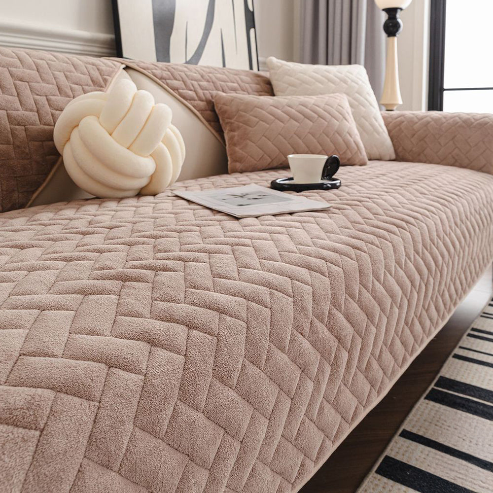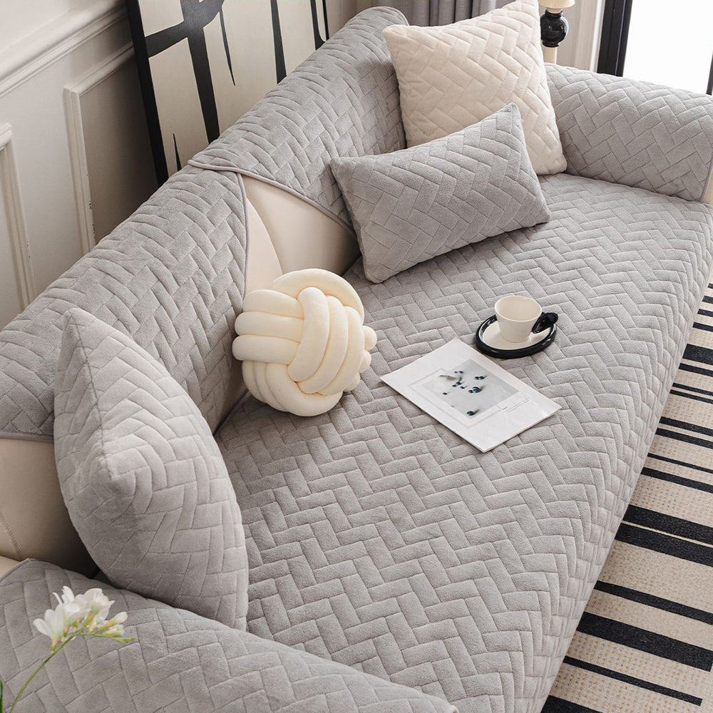 Enhance your living space with our Plush Velvet Herringbone Nonslip Sofa Cover. Designed for the cooler months, this cover combines the luxurious feel of milk velvet with a sophisticated herringbone pattern, offering both warmth and style. Crafted from high-quality, thickened velvet, this cover provides comfort, durability, and protection for your sofa.