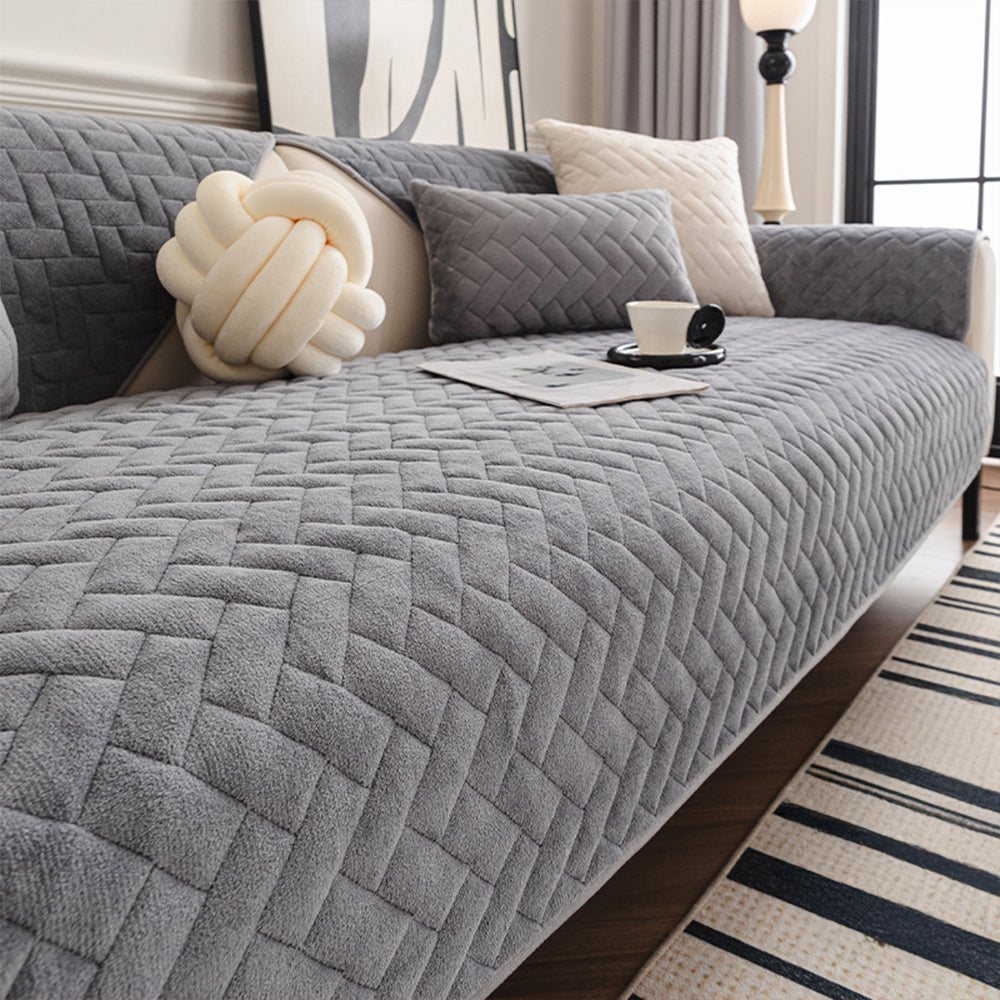 Plush Velvet Herringbone Nonslip Sofa Cover
