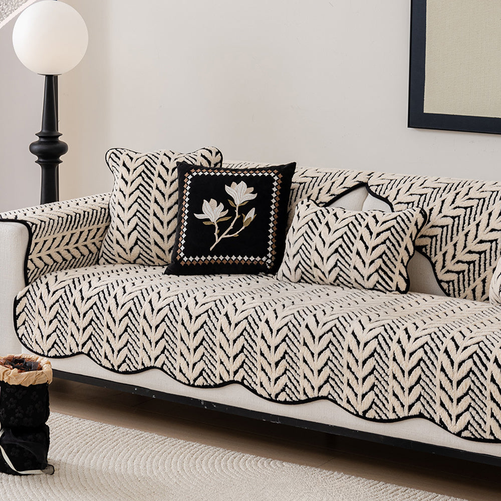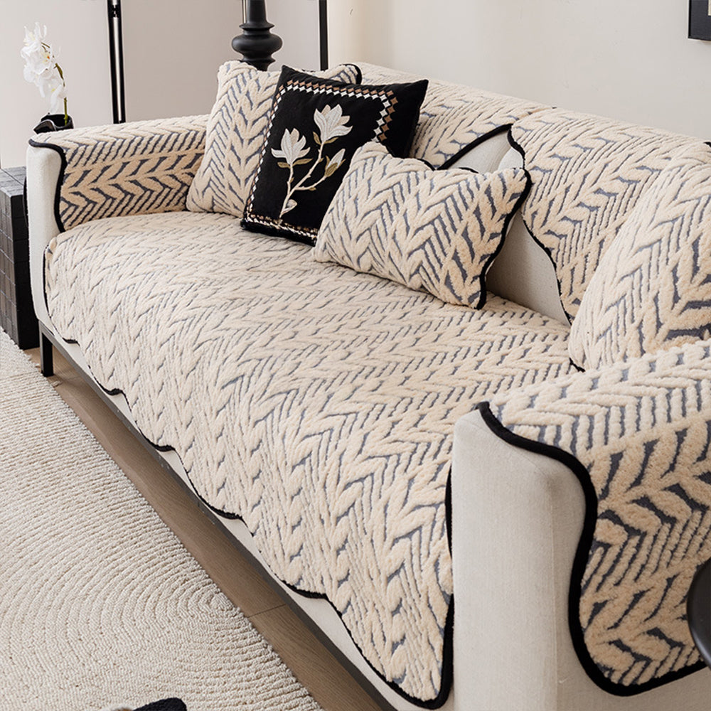 Retro Herringbone Plush Non-Slip Sofa Cover