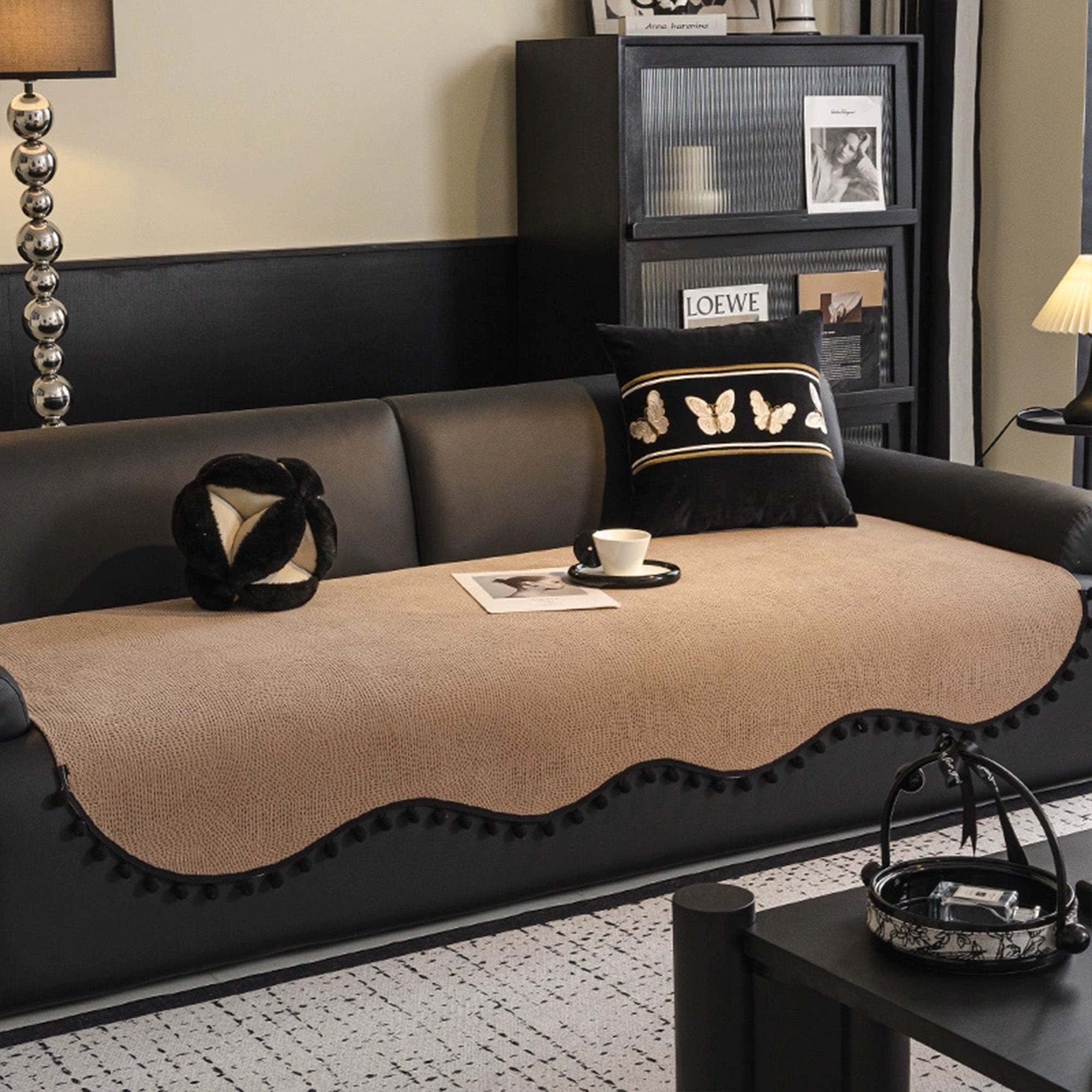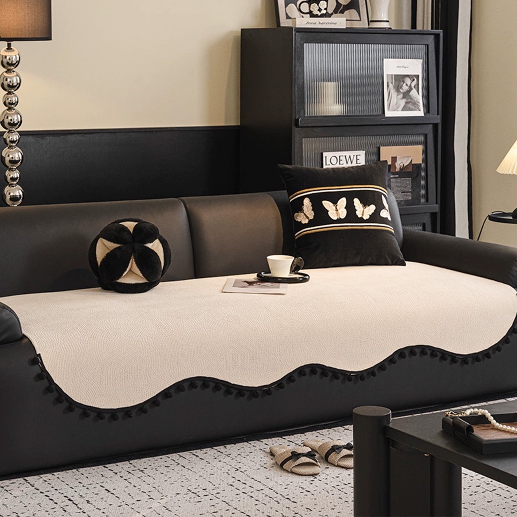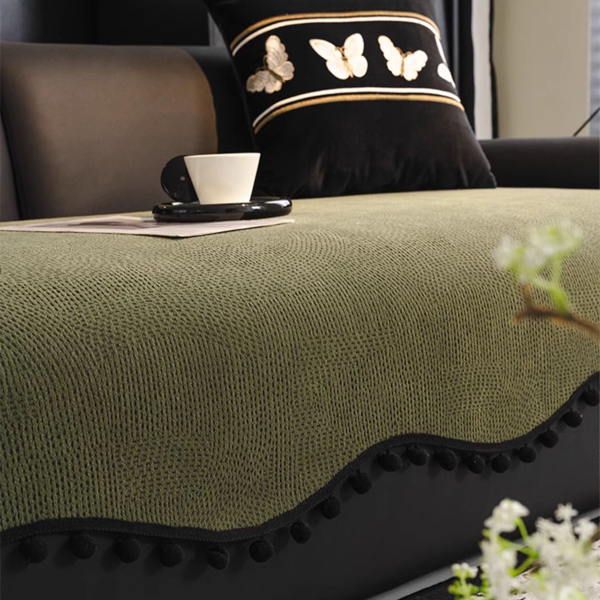 Bring timeless charm and comfort to your home with our Vintage Charm Chenille Non-Slip Sofa/Couch Cover. Designed with elegant scalloped edges and accented with playful pom-pom trim, this cover adds a unique retro-inspired flair to any living space.