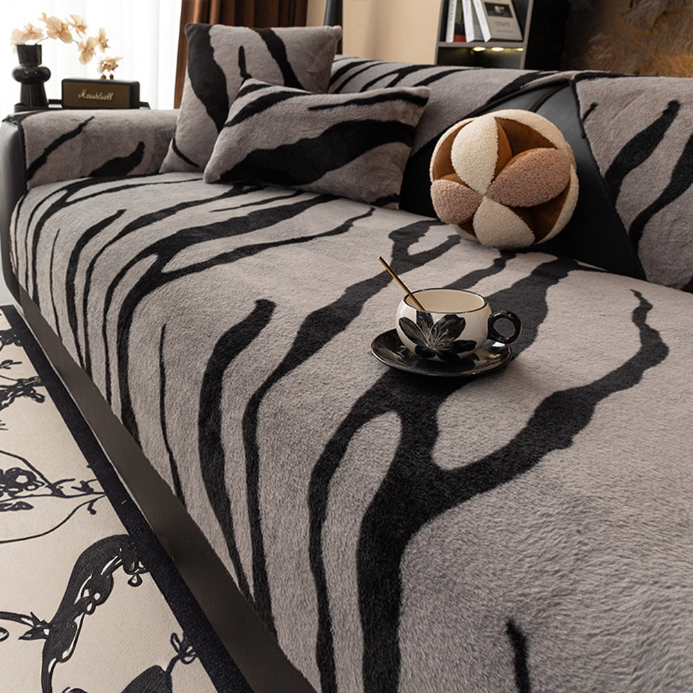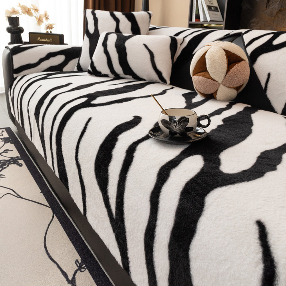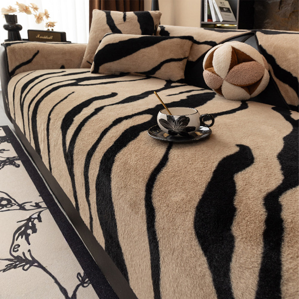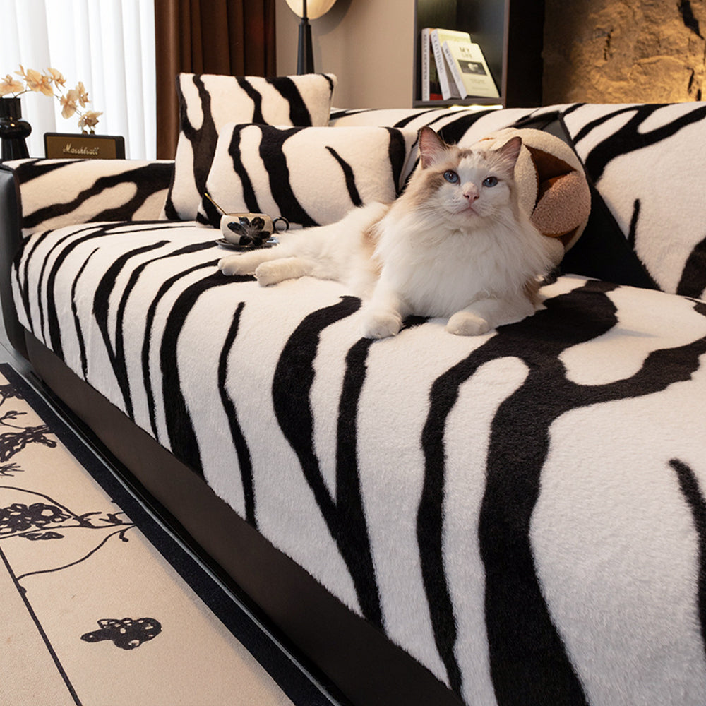 Zebra Pattern Faux Fur Nonslip Sofa Cover
