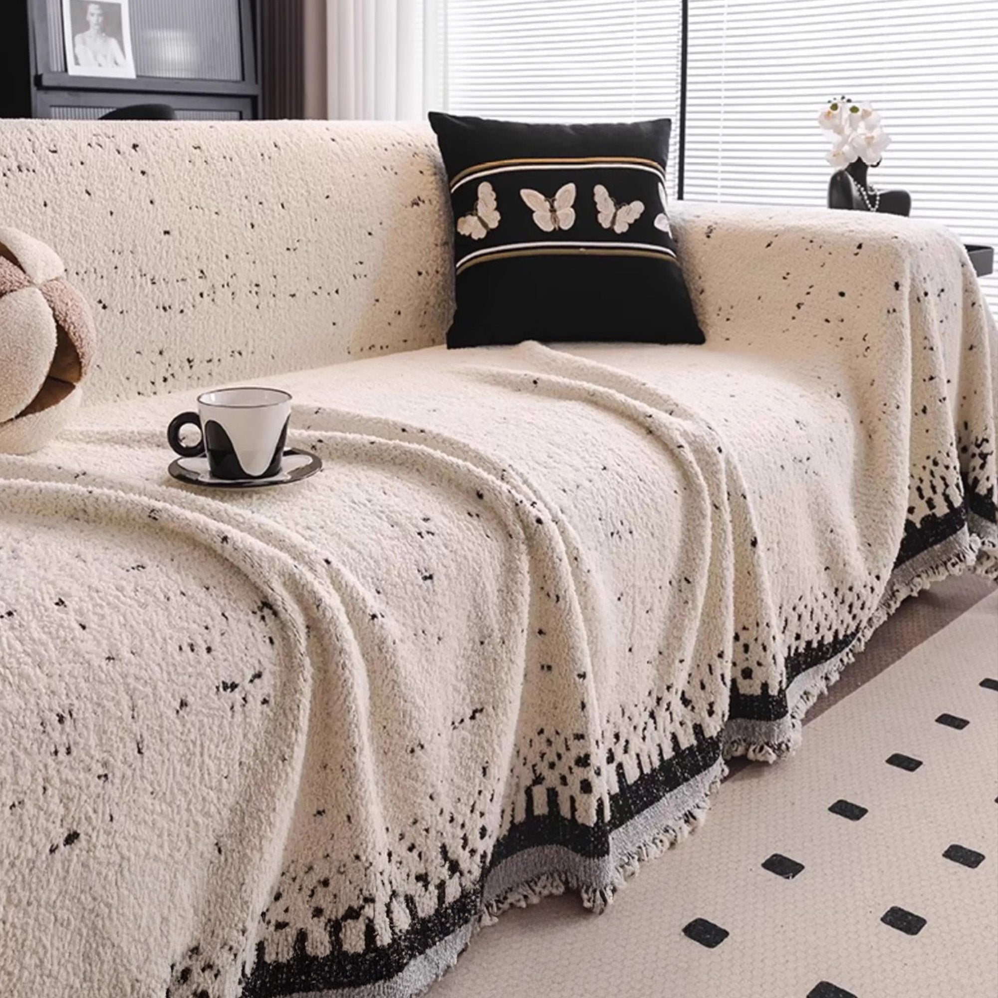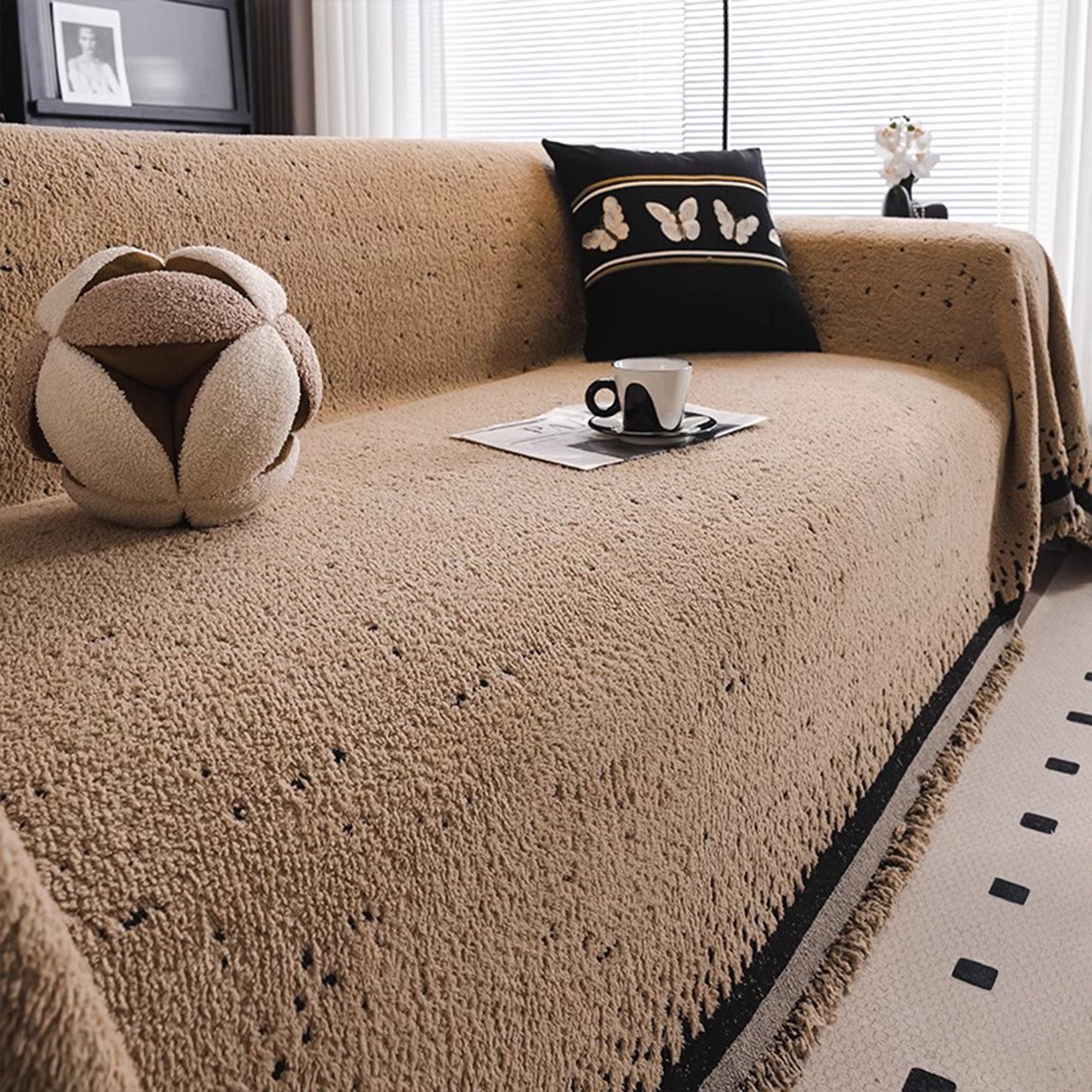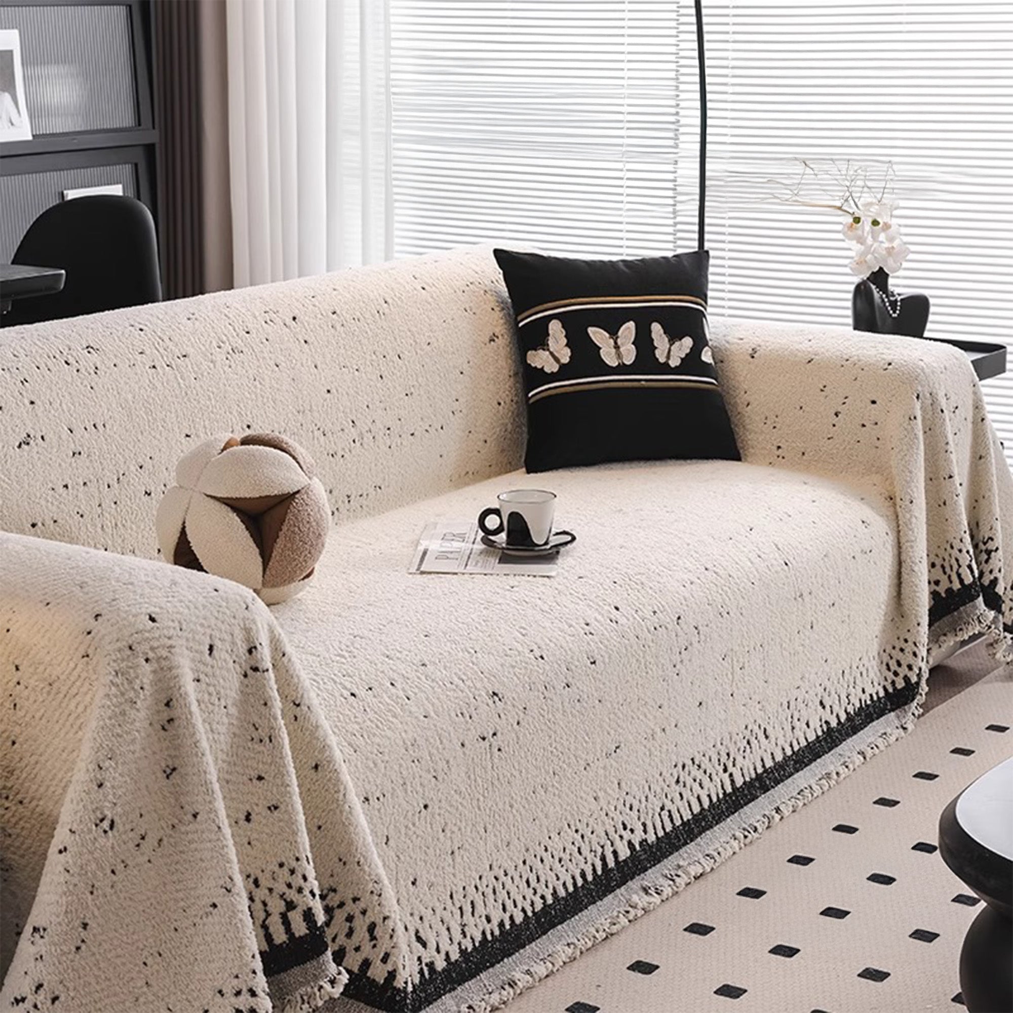 Elevate your lounging experience with the CloudTuft Chenille Sofa Cover — where plush comfort meets sophisticated texture. Crafted from ultra-soft chenille, this cover offers a rich tactile feel and a relaxed, elegant aesthetic. With its fringed edges and speckled detail, it adds dimension and warmth to any living space.