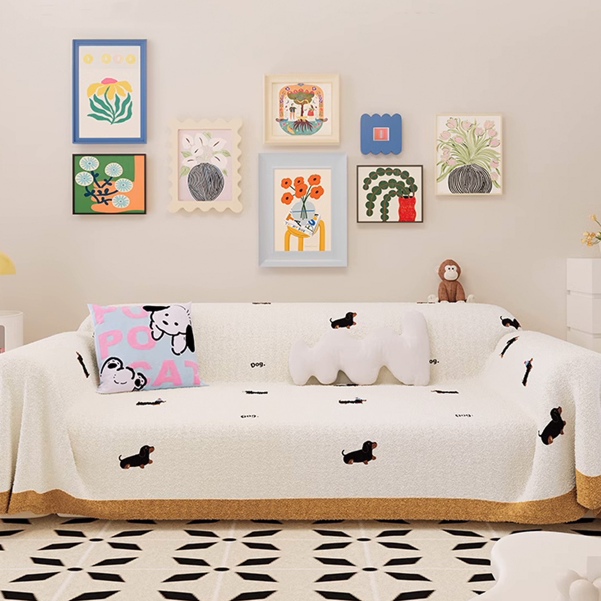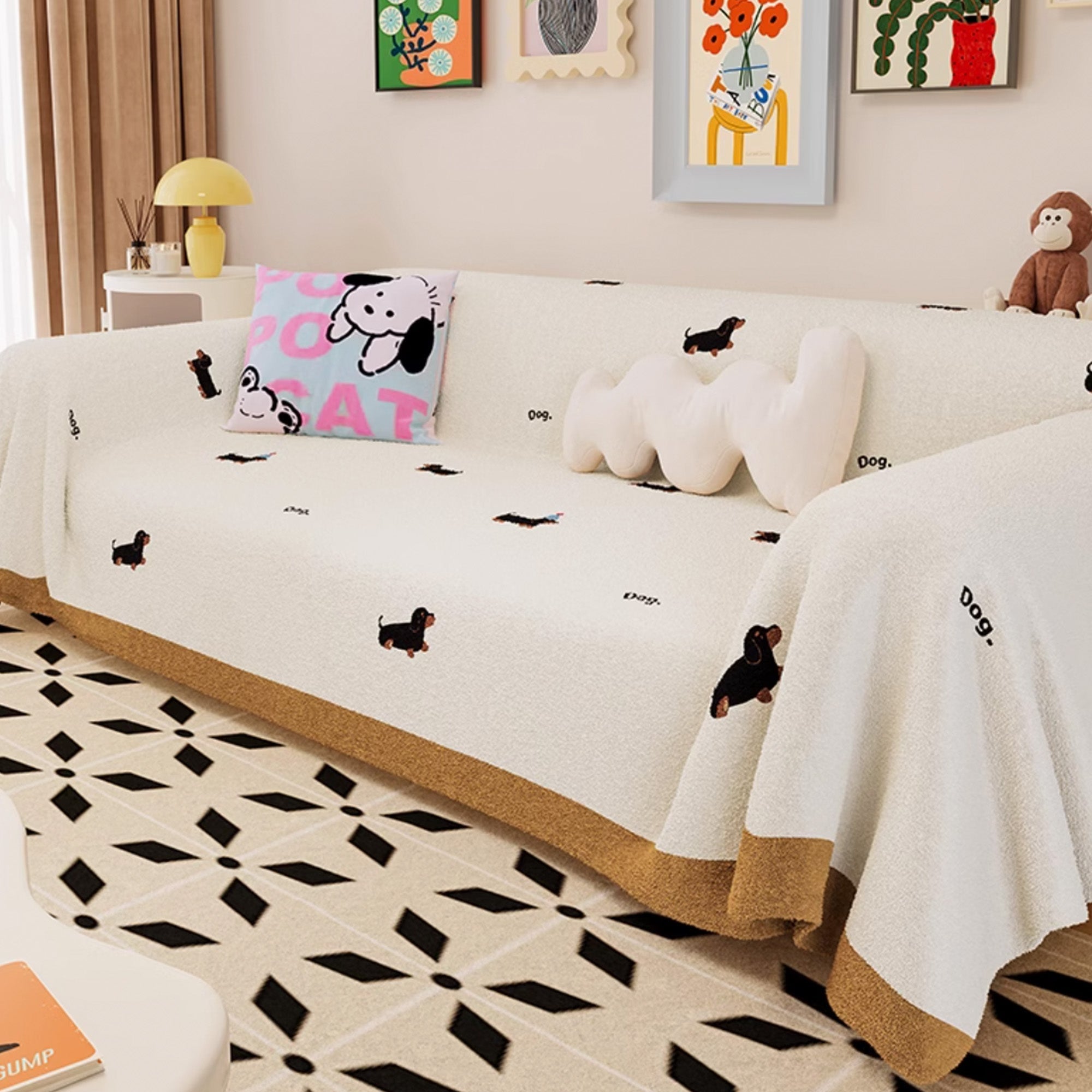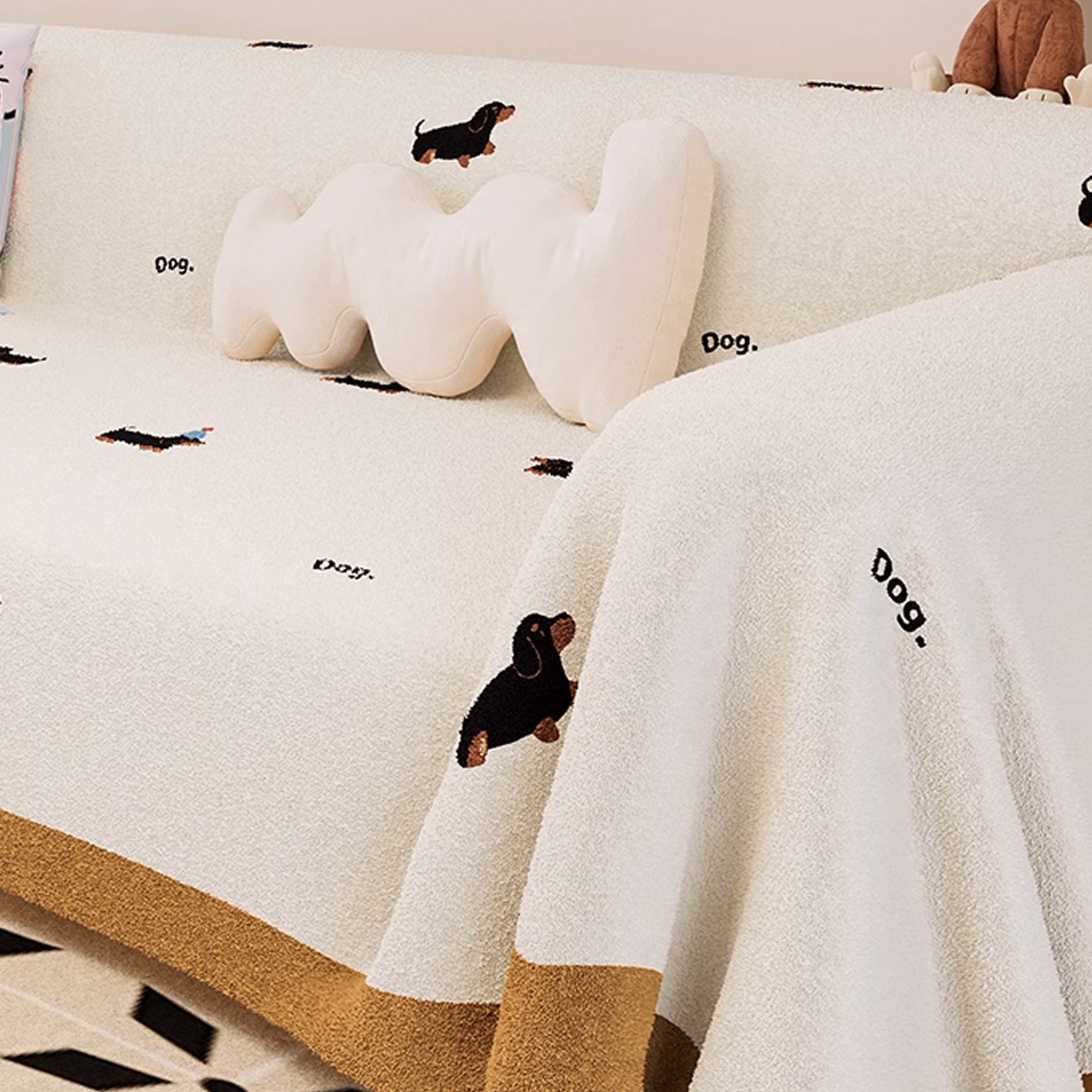 Dog Pattern Plush Fabric Sofa Cover for Pet Lovers, Soft and Cozy Design