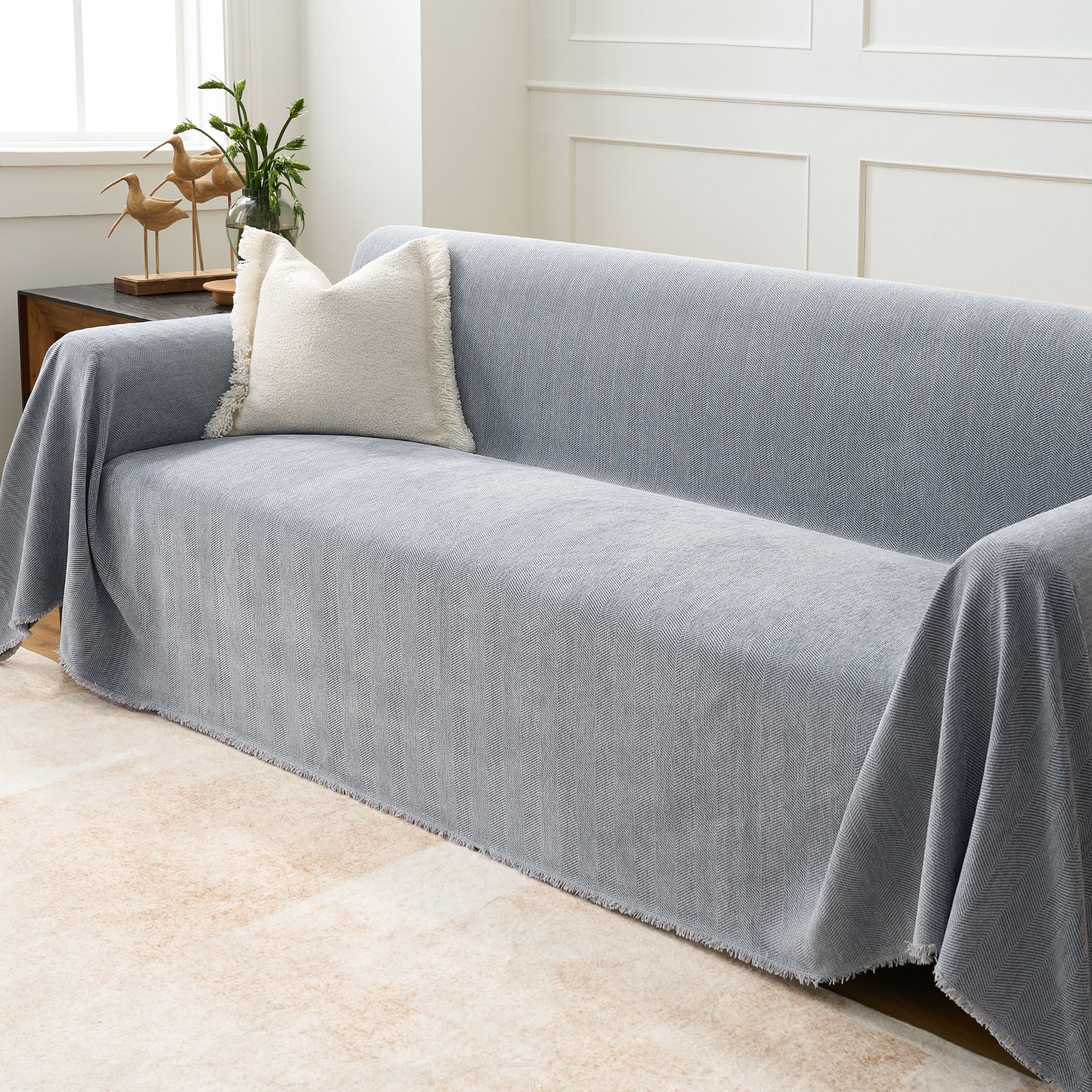 Elevate your room with the understated sophistication of our Durable Pet Friendly Herringbone Sofa/Couch Cover. Crafted from a high-quality, soft fabric, this cover combines classic texture with a modern, sleek design. Its subtle herringbone pattern adds refined detail, making it a versatile statement piece that complements any decor style. Ideal for protecting your sofa while adding a layer of comfort and style, this cover enhances the ambiance of your space.