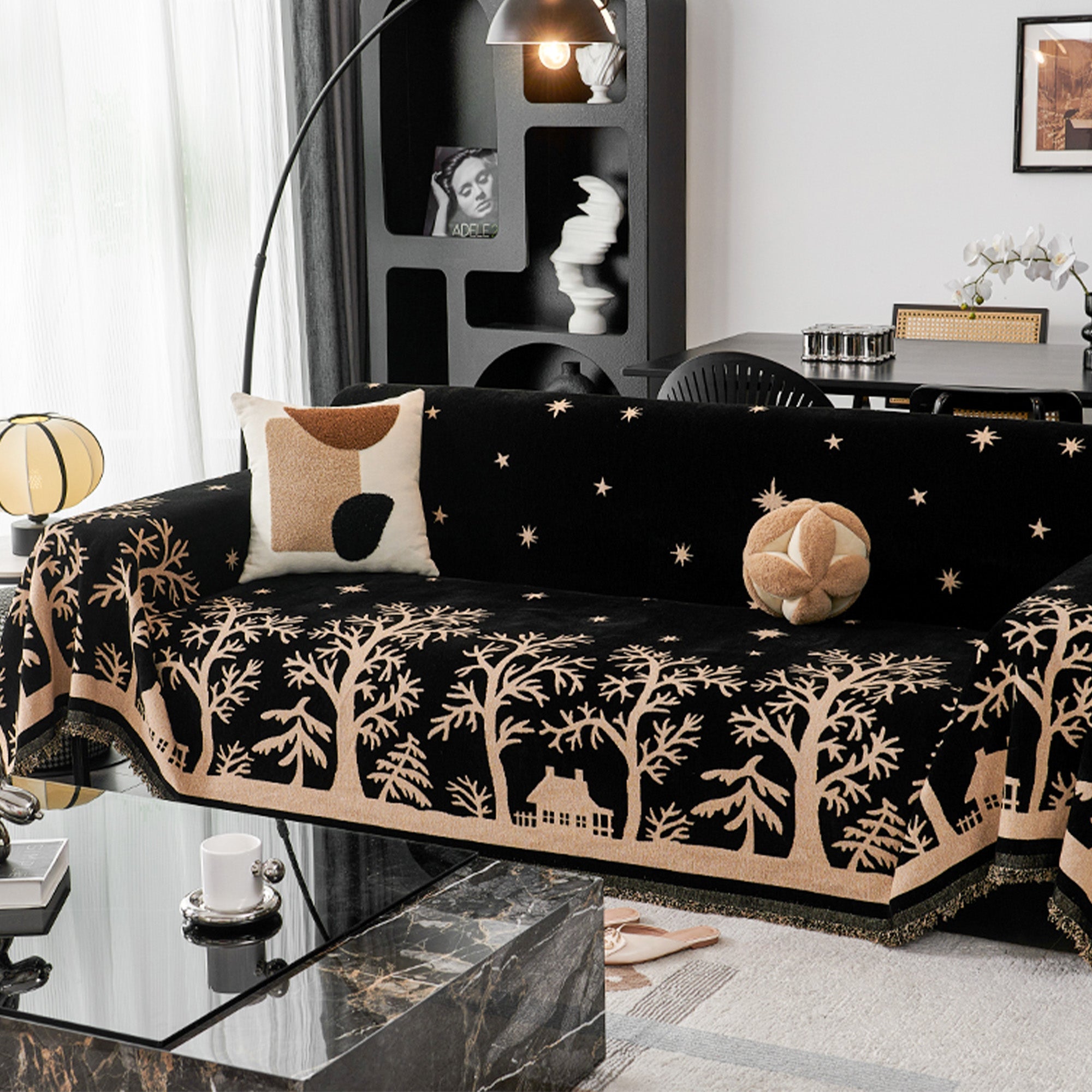Transform your sofa into a woodland wonderland with the Forest Night Sky Sofa Cover. Designed to blend artistry and practicality, this sofa cover is the ultimate solution for protecting your furniture while adding a touch of elegance. Featuring a tranquil forest silhouette under a starry sky, this cover creates a calming ambiance in any living space.