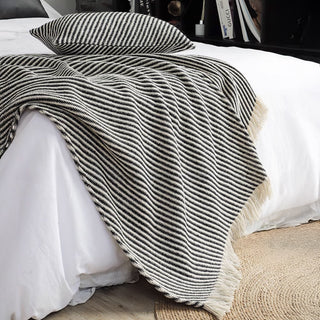 Transform your space with our Fringed Trim Soft Blanket, designed to complement any environment with its striking black and white texture. This blanket is warm, soft, and airy, providing exceptional comfort while remaining lightweight and durable. The stylish fringed trim adds a touch of elegance, enhancing the overall aesthetic.