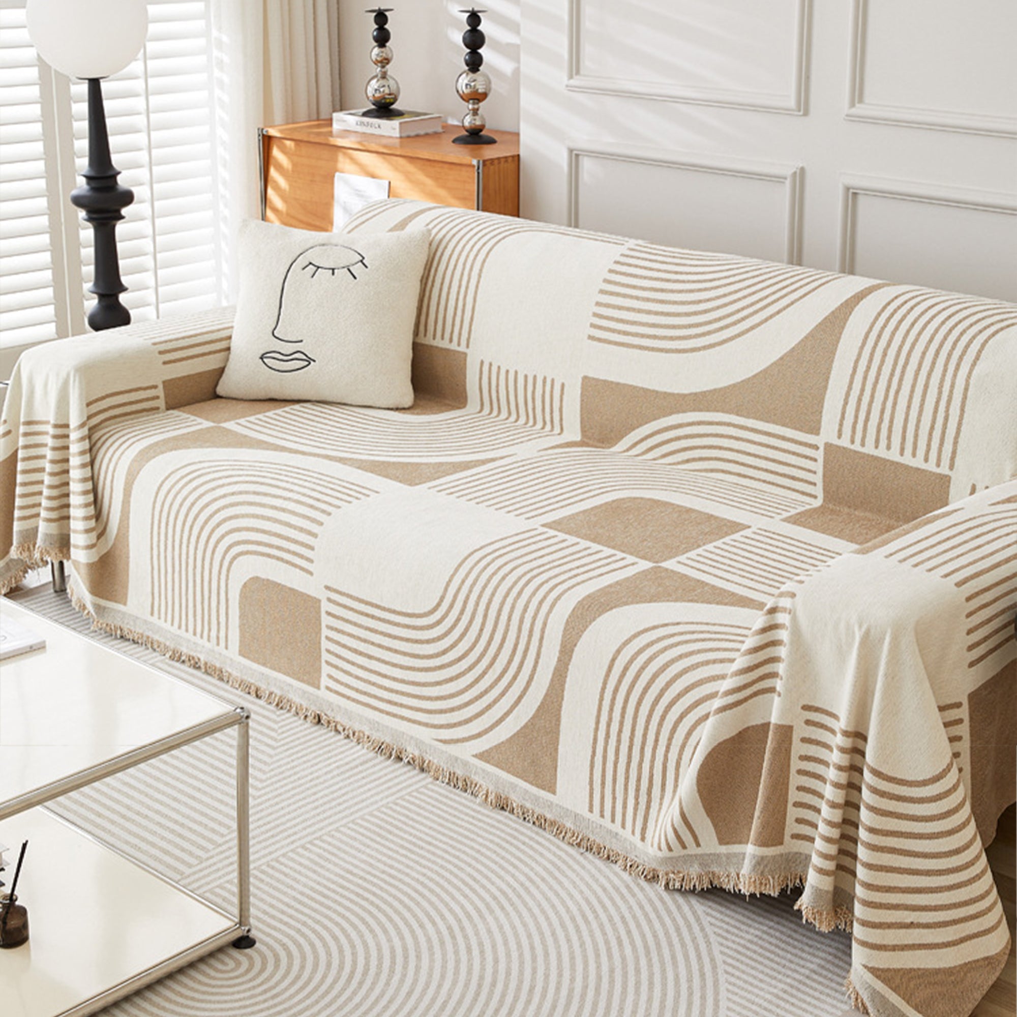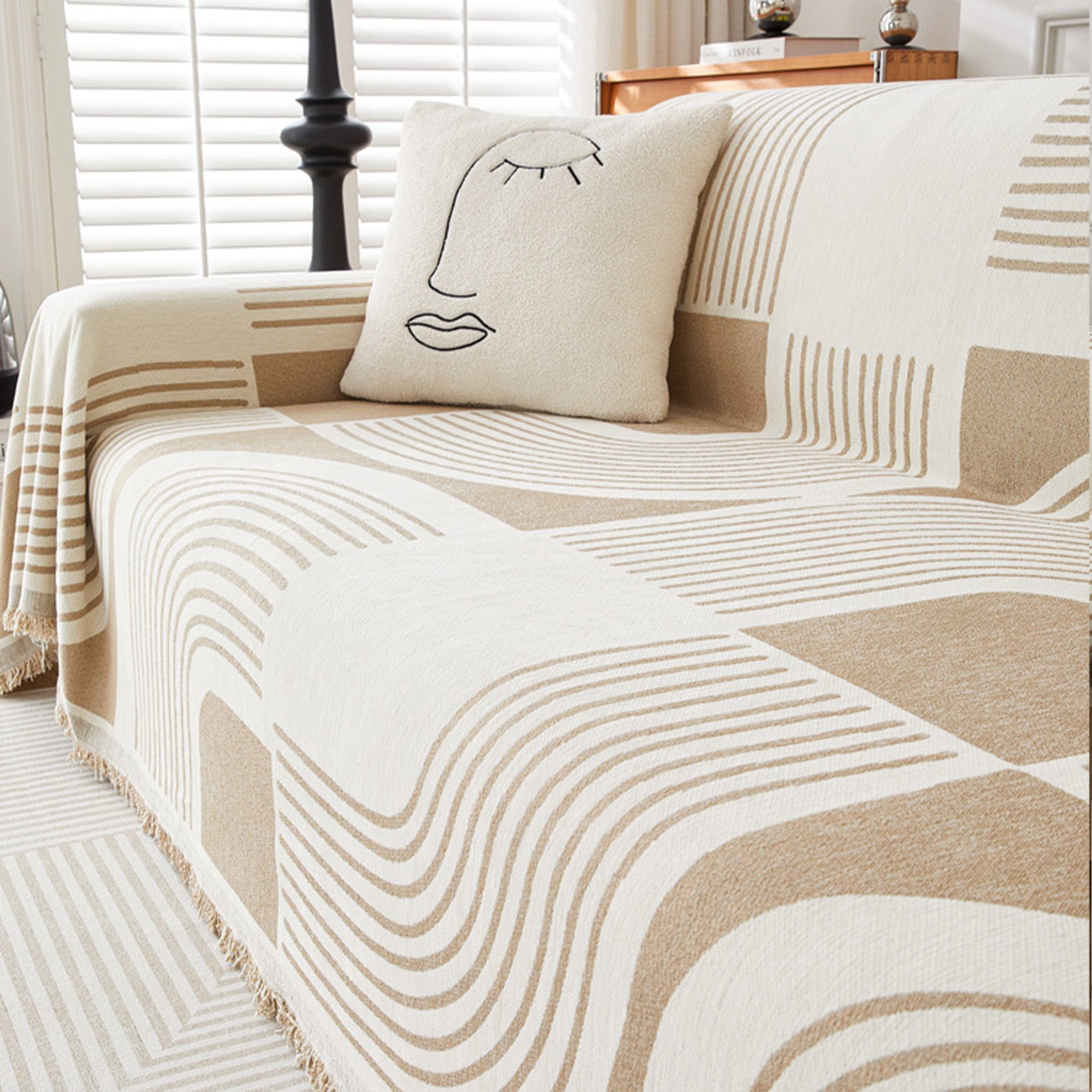 Introduce modern sophistication to your living room with the Geometric Harmony Sofa Cover. Featuring clean lines and an elegant interplay of curved and linear patterns, this cover effortlessly enhances the aesthetic of any contemporary or minimalist home.