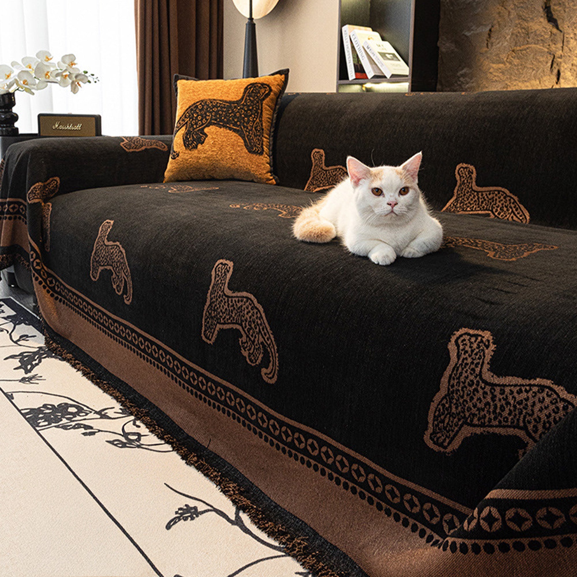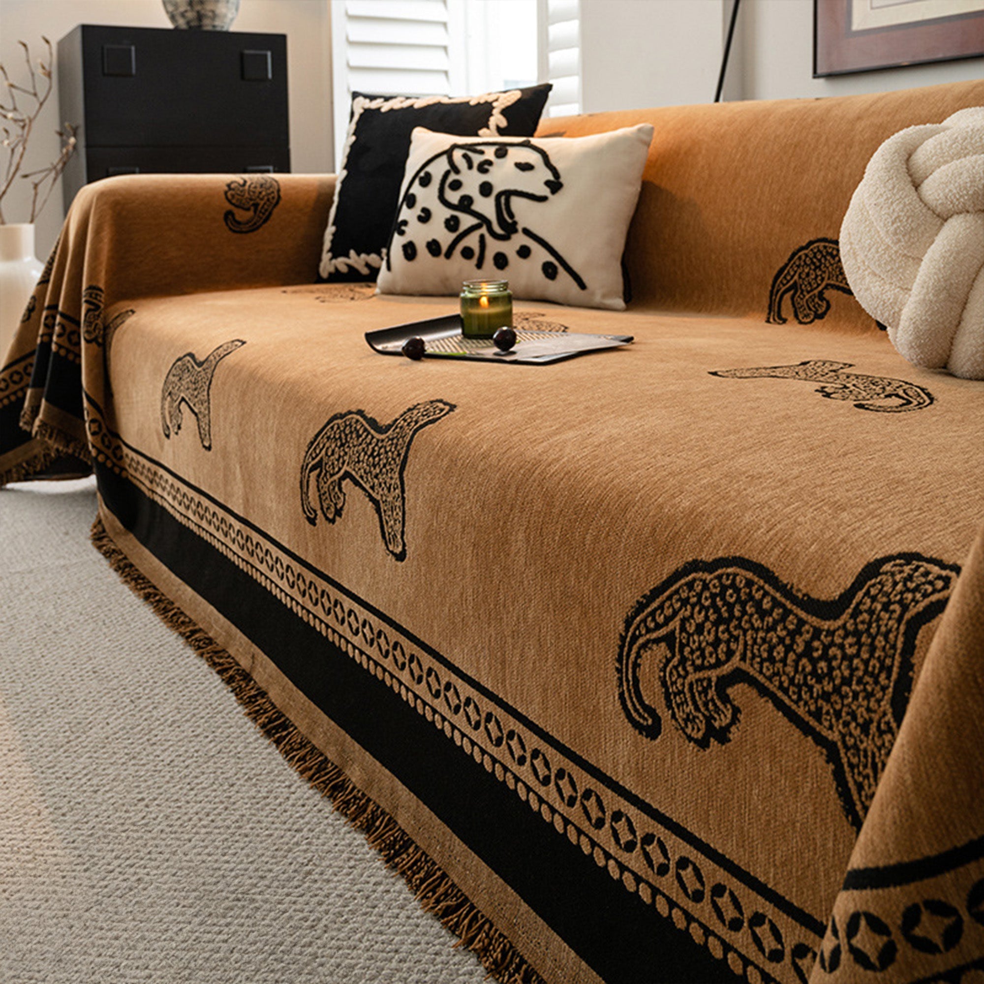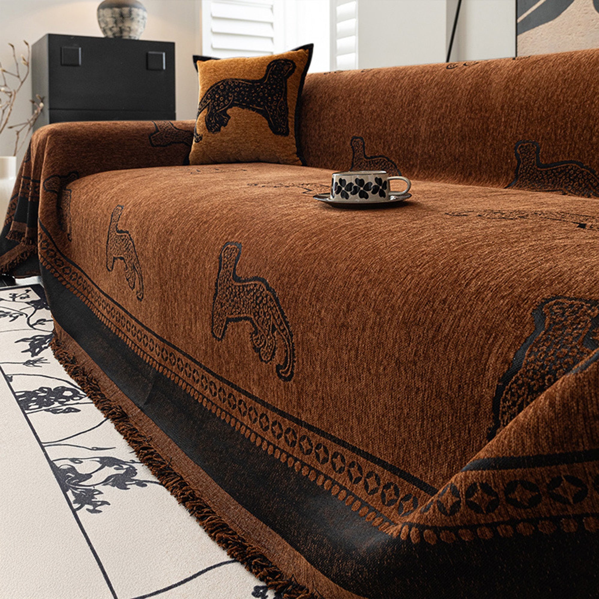 Leopard Pattern Chenille Sofa Cover – Scratch Resistant & Washable