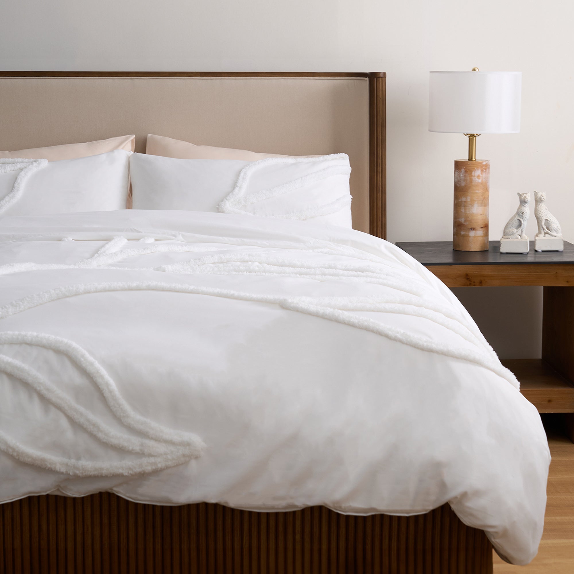 Turn your bedroom into a cozy retreat with the Luxe Leaf Tufted Duvet Cover Set. The soft, velvet-like tufting gives it that dreamy texture perfect for cuddling with your fur baby, while the leaf patterns bring a calming touch of nature inside. It’s more than just a pretty face, though – this duvet keeps you warm on chilly nights without overheating, so you and your pet can stay comfortable. Durable enough for daily use and pet-friendly messes, it’s as easy to care for as it is to love. Whether you’re curling up for a movie night or just enjoying some downtime, this duvet is ready to wrap you in comfort.