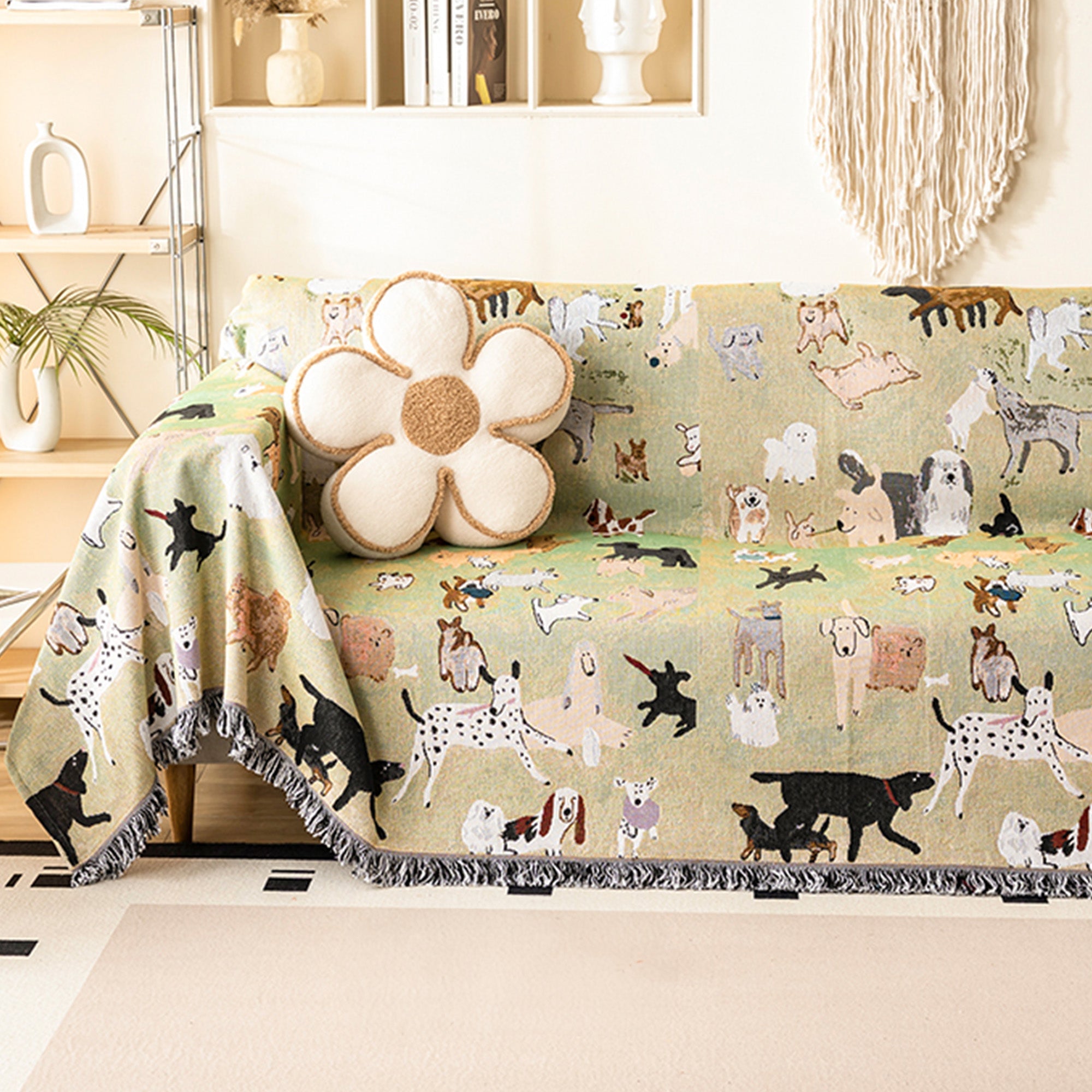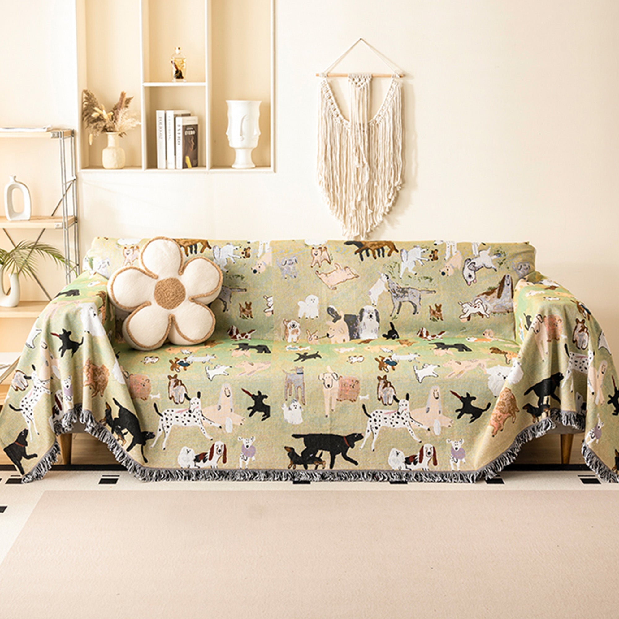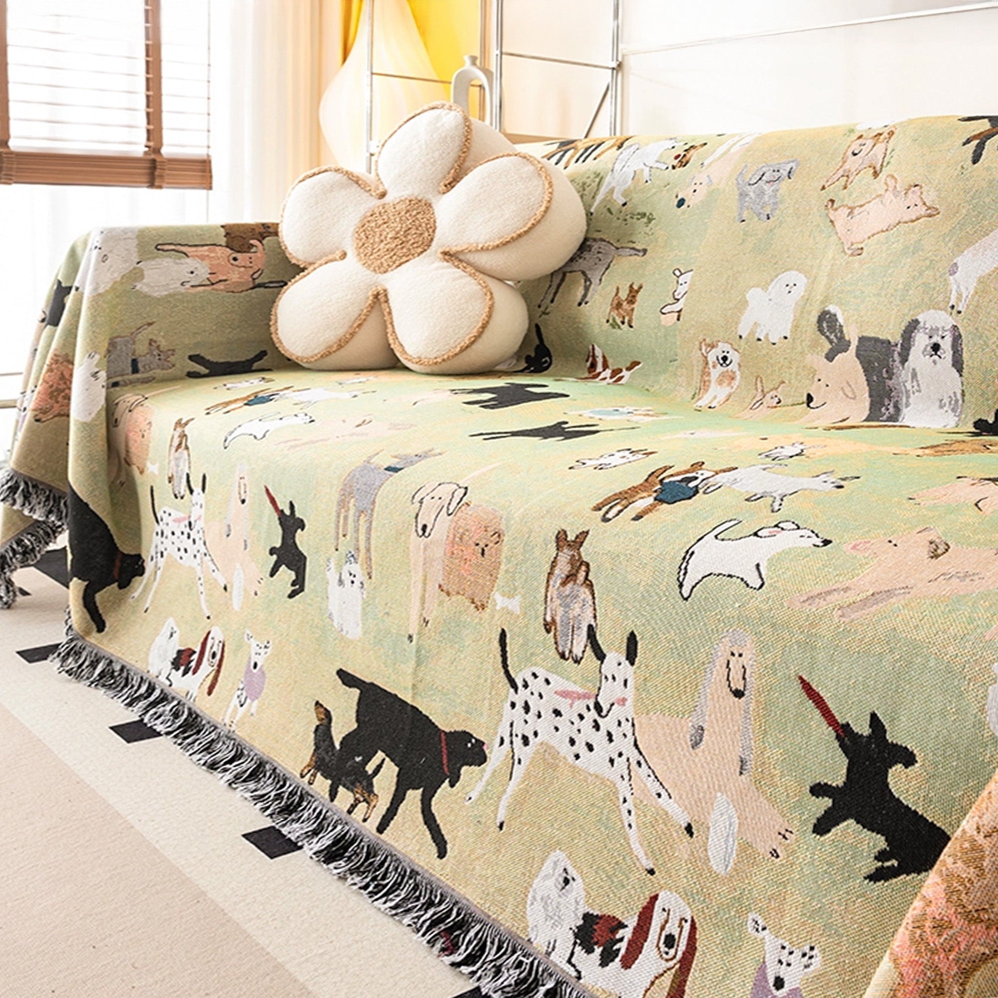 Add a splash of joy to your space with the Puppy Parade Sofa Cover. Crafted from a breathable faux-linen blend, this sofa cover features an all-over pattern of charming illustrated dogs — each one full of personality. The lightweight yet textured fabric offers a relaxed drape while protecting your furniture with whimsy and style.
