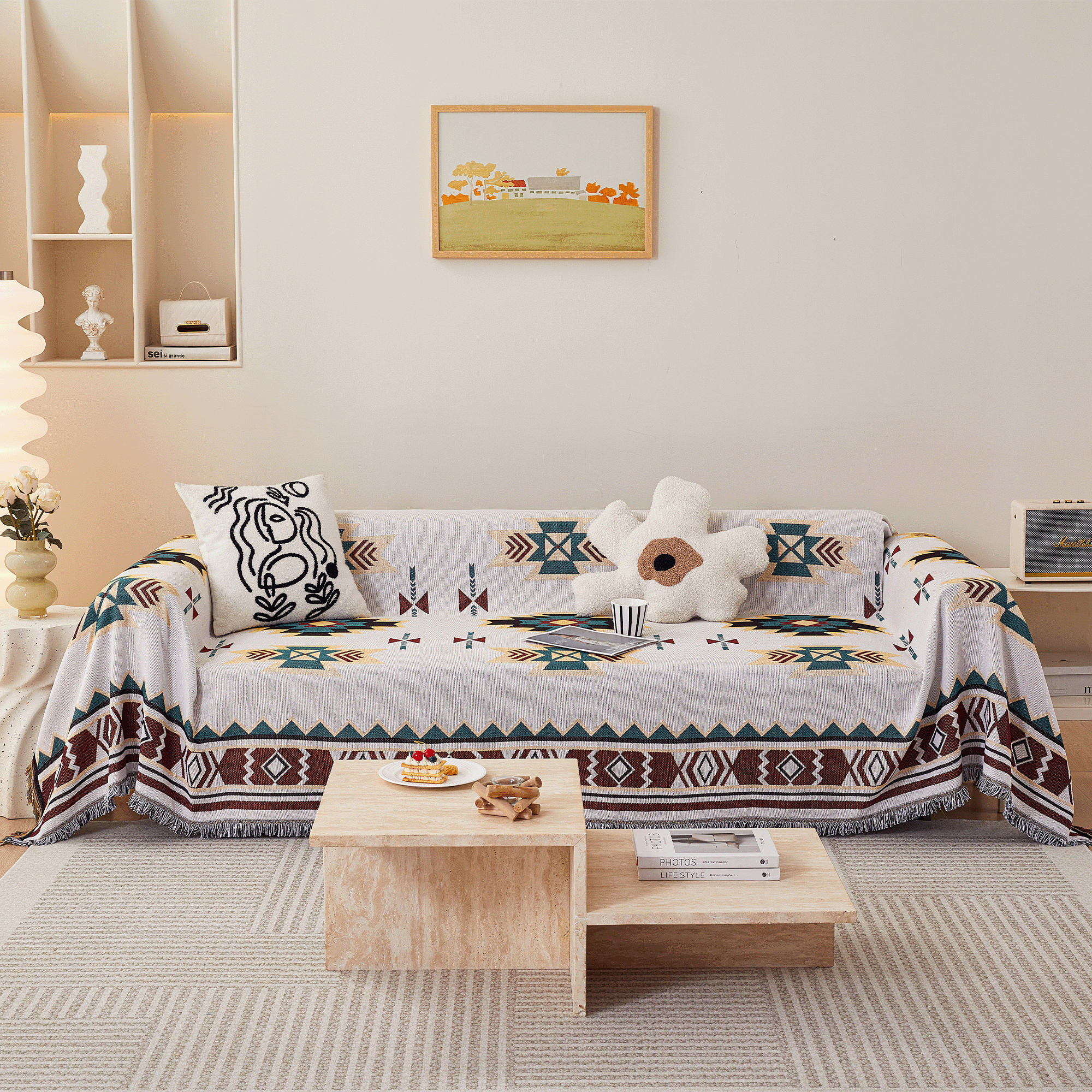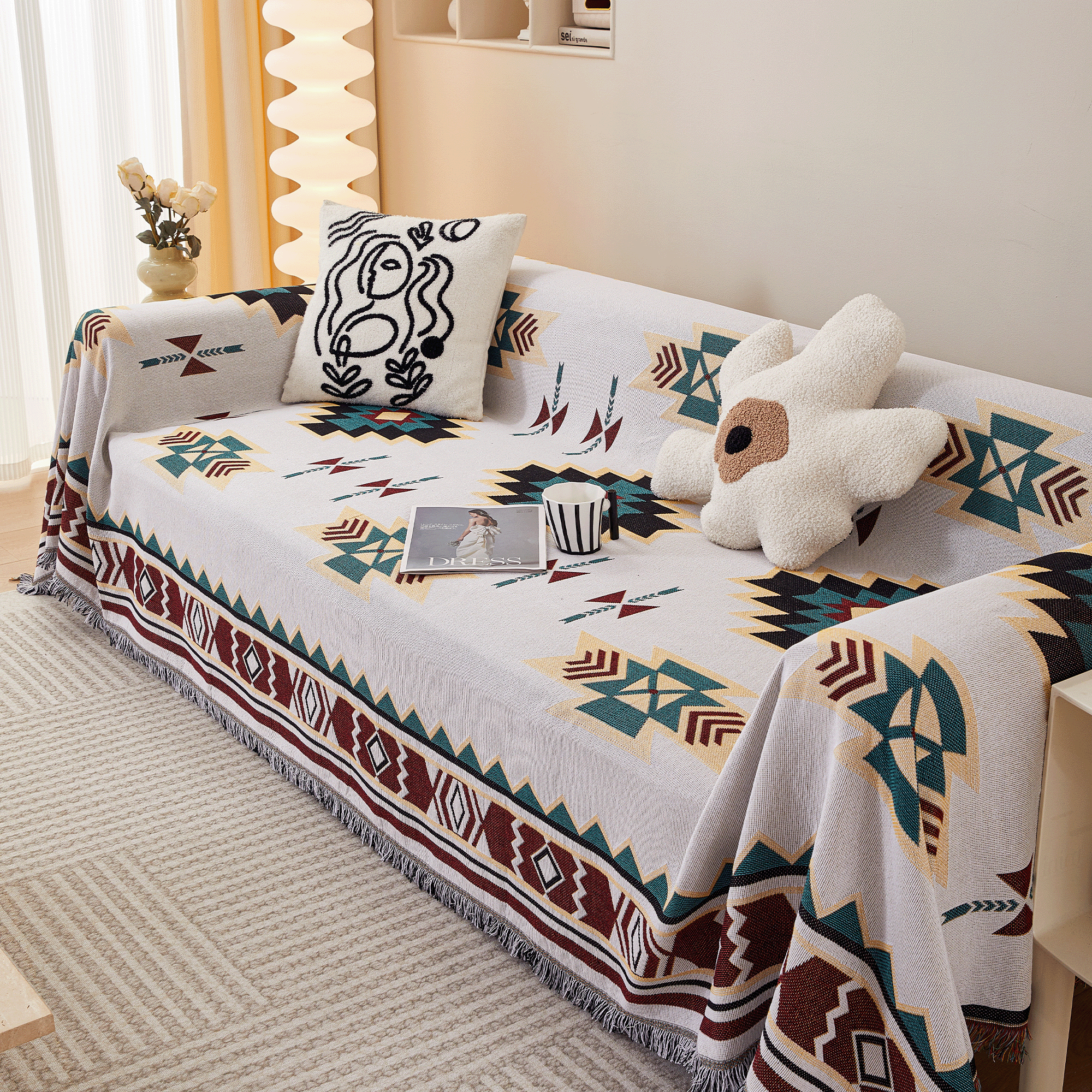 Unleash the charm of your living room with our Tribal Tales Sofa Cover! Designed for pet lovers who refuse to compromise on style or functionality, this cover is the ultimate solution for a pet-friendly home. From muddy paws to accidental spills, it's got you covered – literally! Elevate your space with our Tribal Tales Sofa Cover and enjoy the peace of mind that comes with knowing your sofa is both safe and stylish.