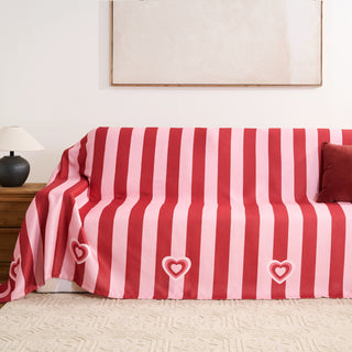 Unique Love Style Striped Chenille Sofa Cover Pink Red Hearts Plush Breathable Comfy High-Resistance Fabric