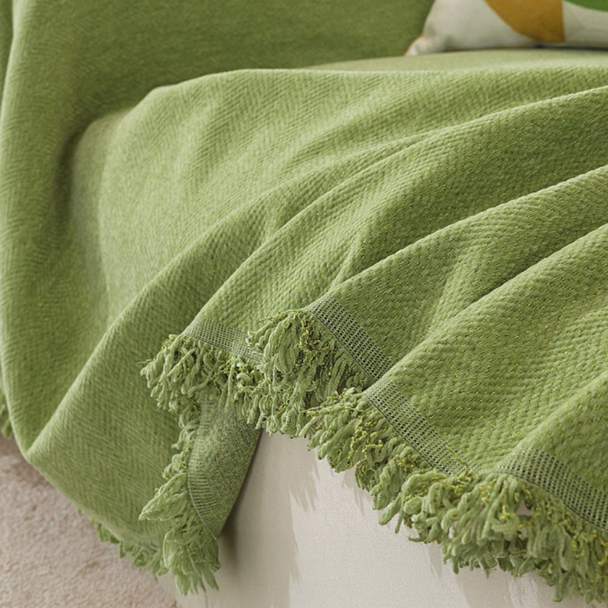 With delicate fringe detailing and rich colors inspired by nature, this throw-style slipcover transforms your space into a serene retreat—no stress, no mess.