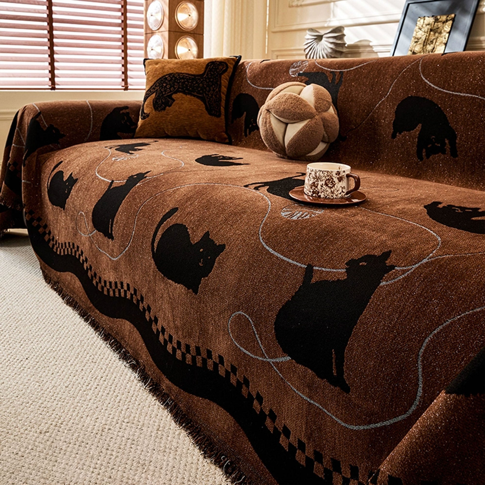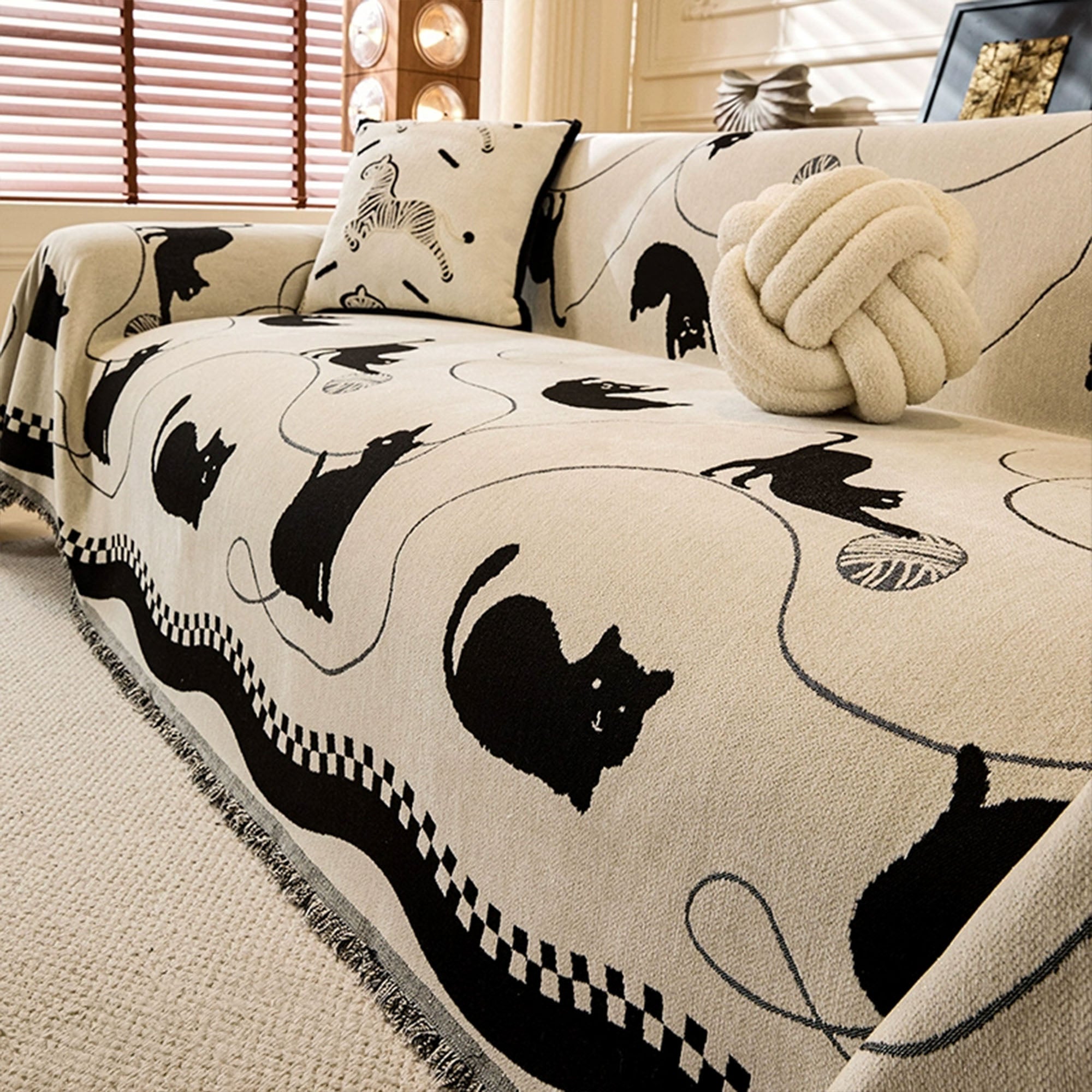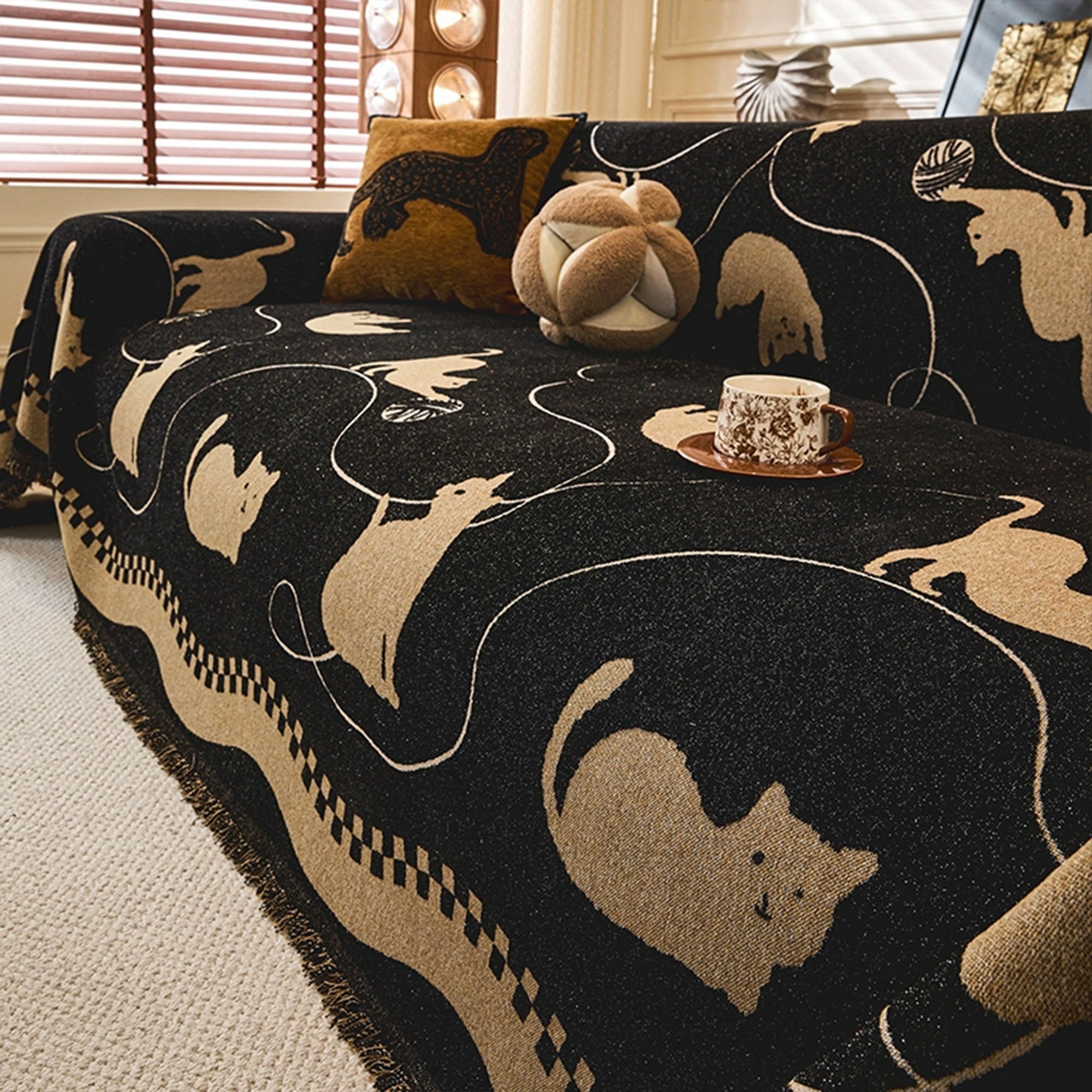 Add a dash of playful elegance to your home with our Whisker Wonderland Chenille Sofa Cover. Featuring charming silhouettes of curious cats, yarn trails, and bold checkered accents, this piece is a purr-fect fusion of coziness and personality. Whether you're a pet lover or simply adore whimsical design, this sofa cover brings warmth and joy into any space.