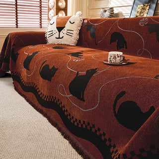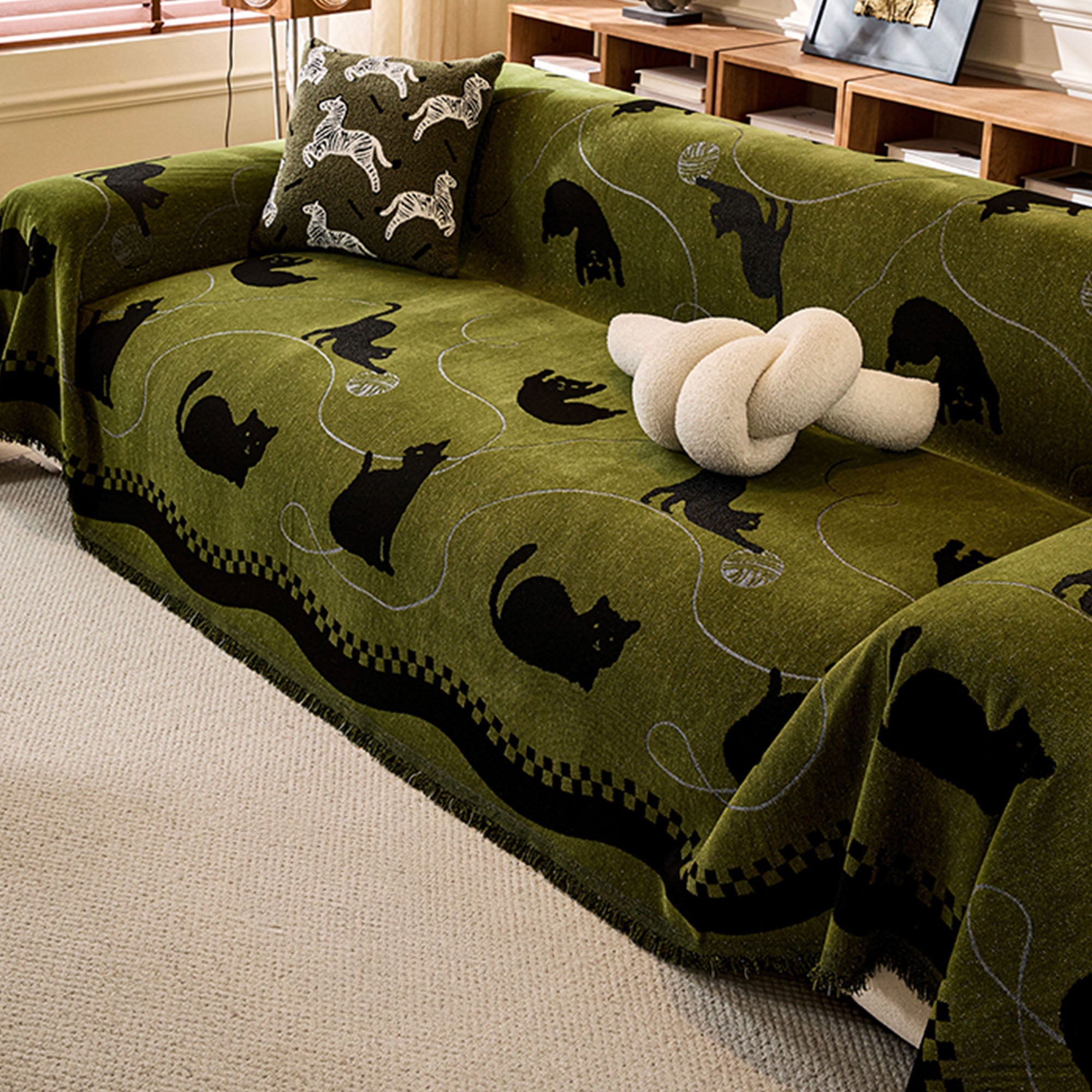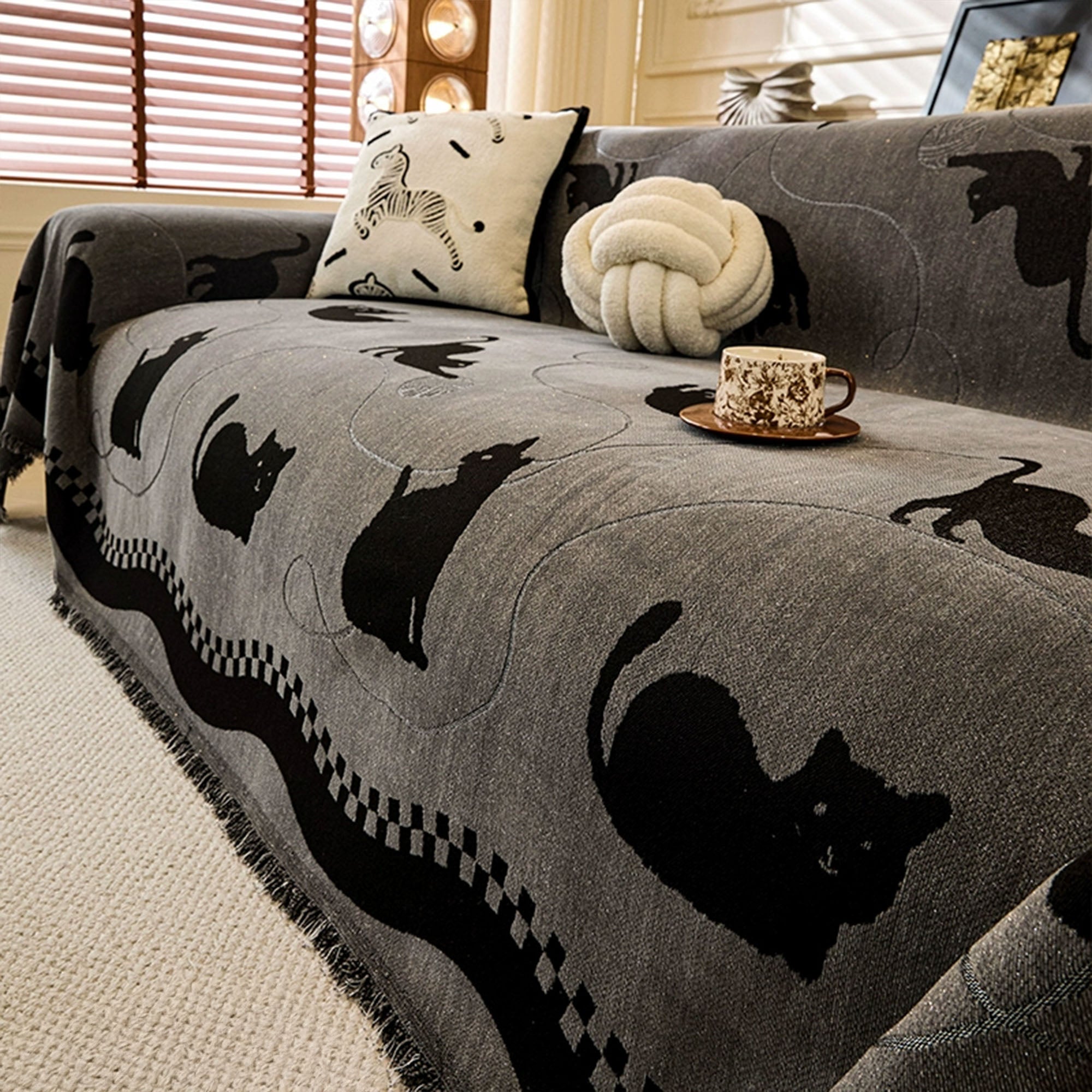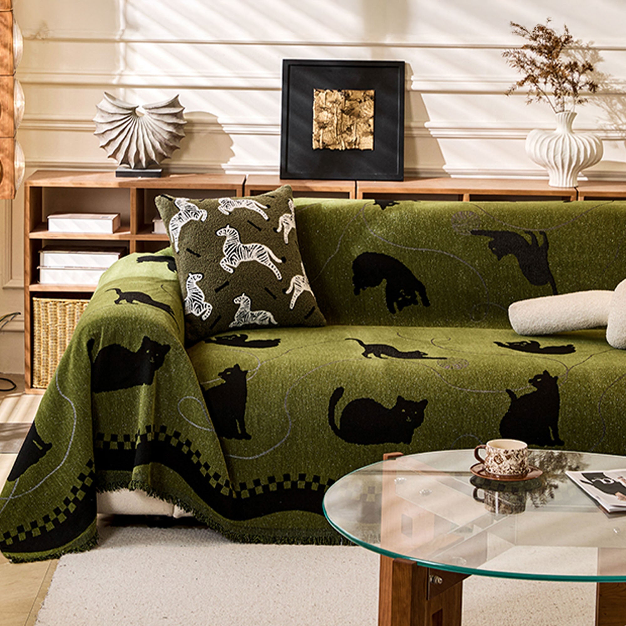 Add a dash of playful elegance to your home with our Whisker Wonderland Chenille Sofa Cover. Featuring charming silhouettes of curious cats, yarn trails, and bold checkered accents, this piece is a purr-fect fusion of coziness and personality. Whether you're a pet lover or simply adore whimsical design, this sofa cover brings warmth and joy into any space.