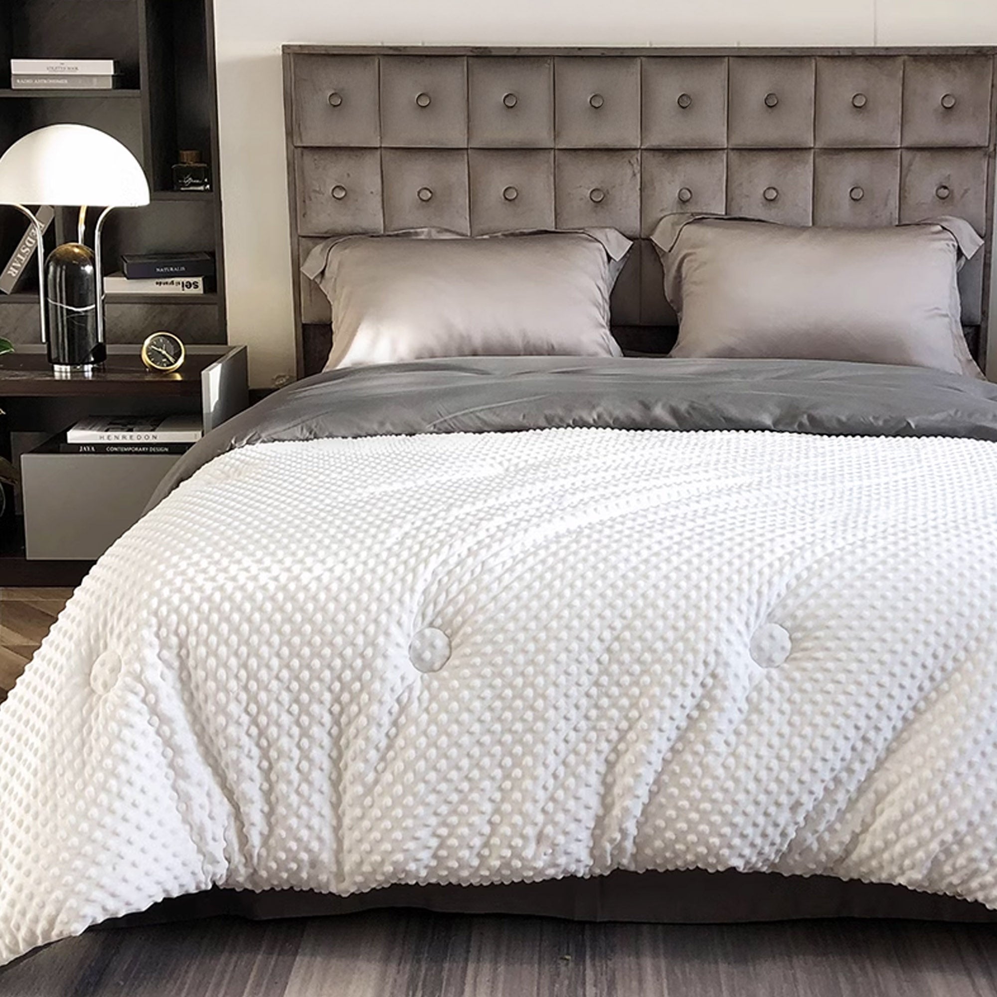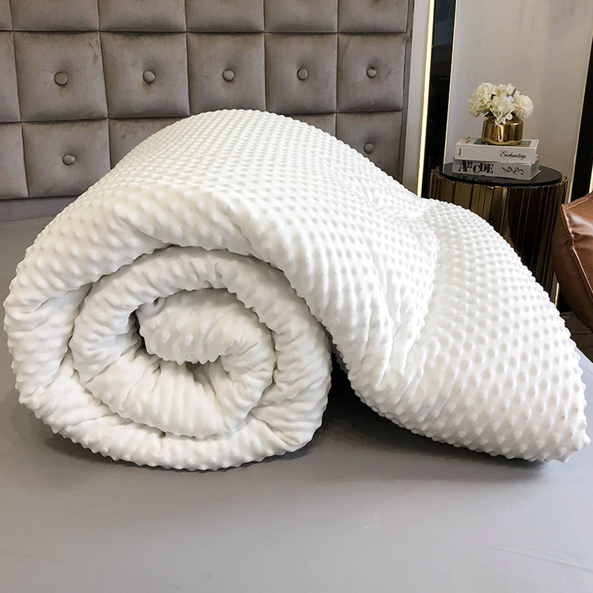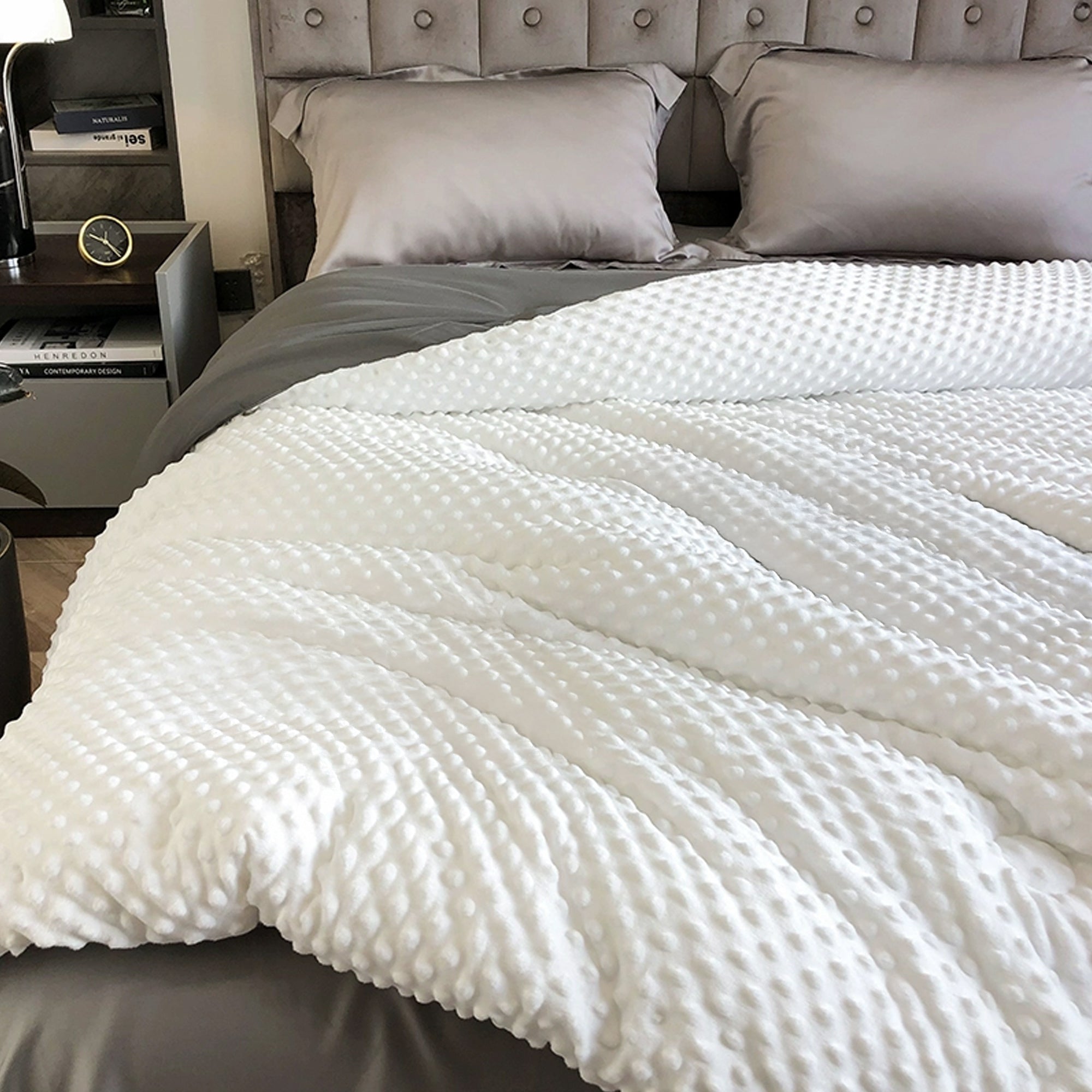 Experience unparalleled comfort with our Winter Plush Dot Massage Comforter, crafted using advanced box stitching technology to ensure the filling stays perfectly in place—no leaks or loose threads. Soft to the touch and meticulously crafted for long-term use, this blanket offers excellent warmth retention and elasticity, making it an ideal choice for year-round comfort. Its lightweight design and breathable material ensure a cozy experience in both summer and winter.